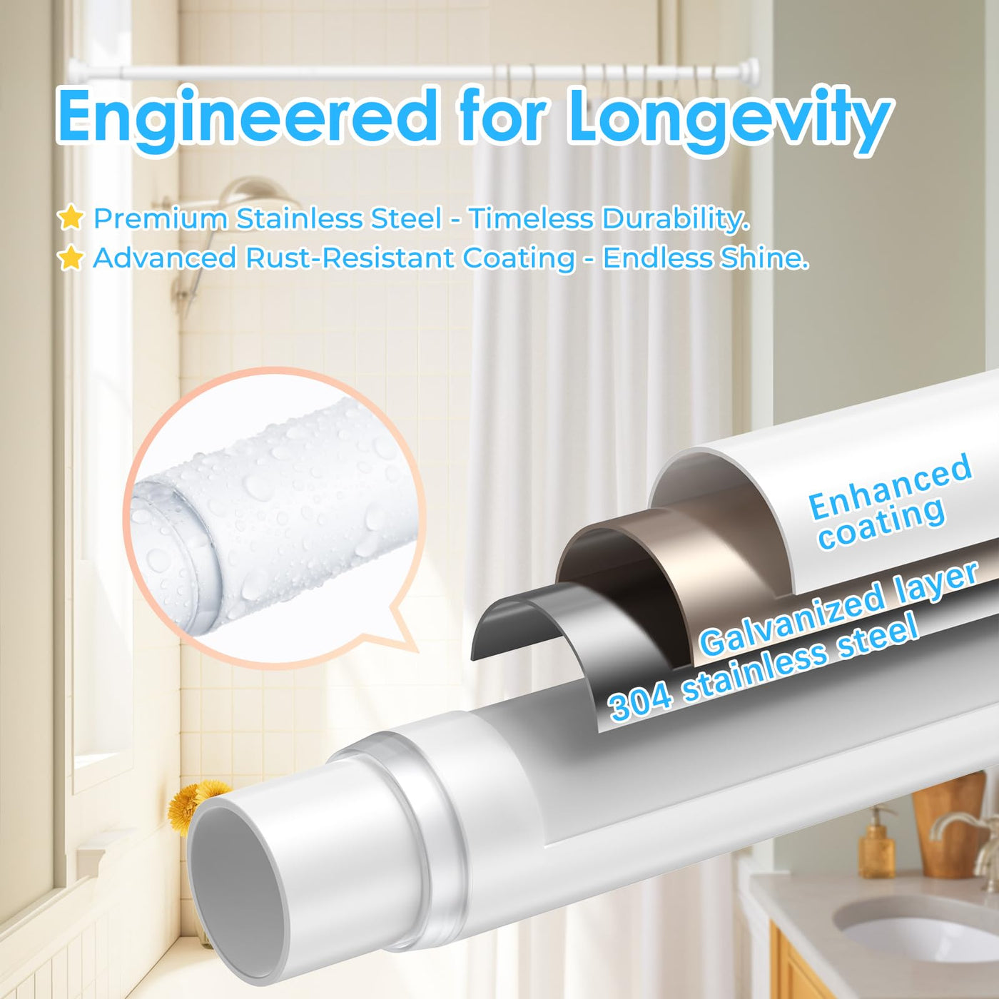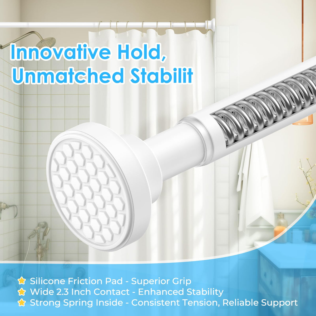 Aizesi Tension Shower Rod 36-63 Inch, 1 Inch Diameter White Tension Curtain Rod Adjustable Curtain Rod Non-Drilling, Anti-Slip Tension Rod, Anti-Rust Shower Curtain Rod