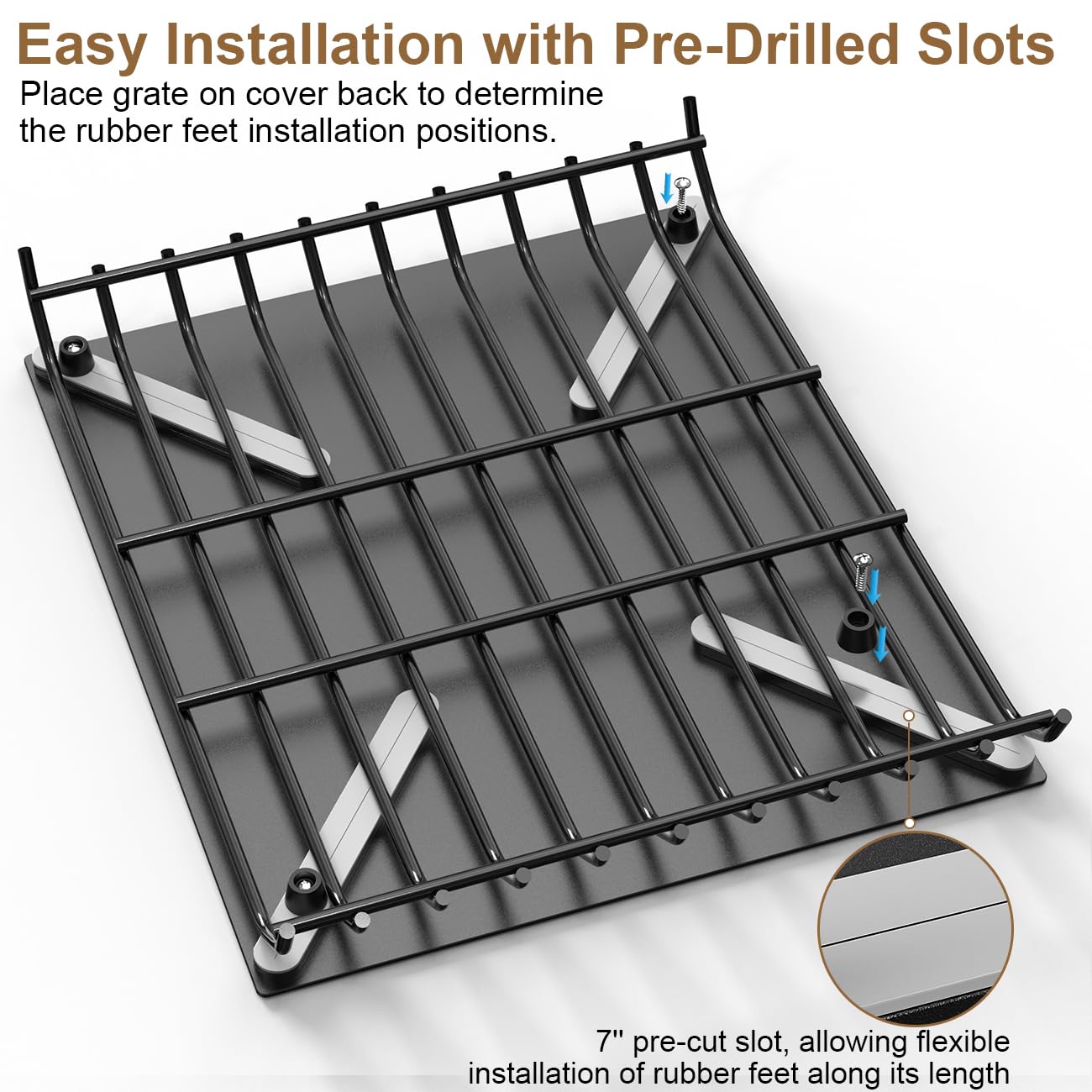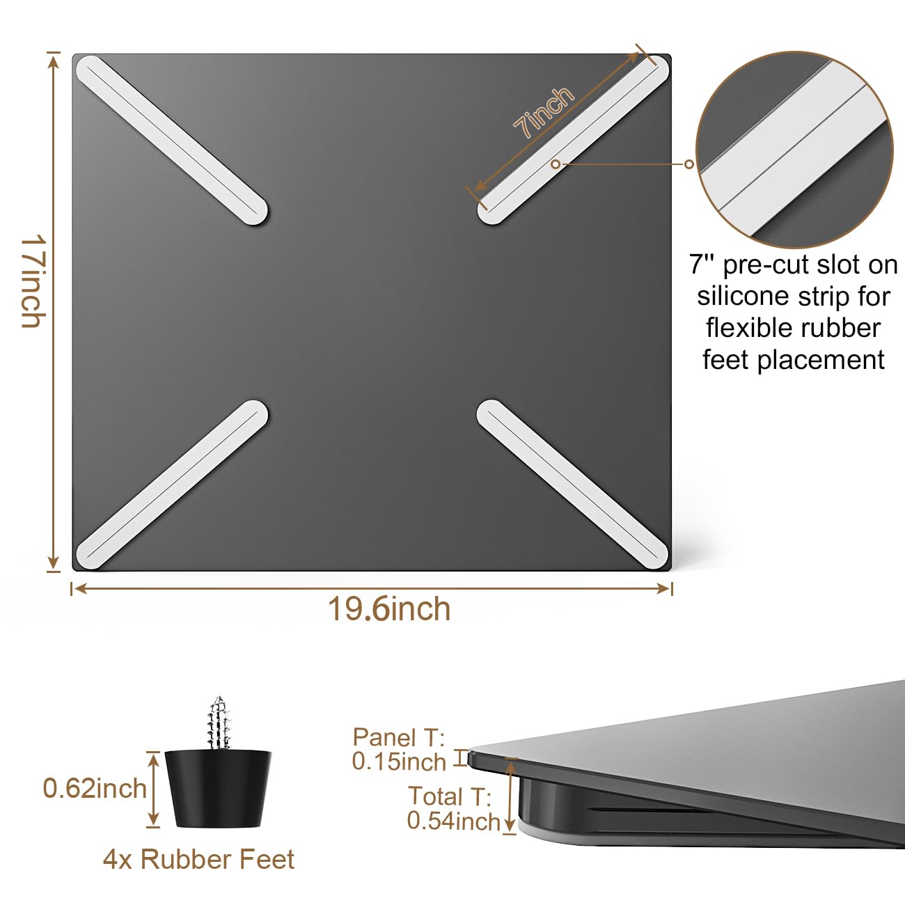 Enhance your RV kitchen experience with our premium RV Stove Top Cover, the perfect blend of functionality and style. Measuring 19.6 x 17, it's expertly designed to fit most three or four burner RV stoves. Crafted from durable aluminum, this stove cover is not only robust but also elegantly finished in black, adding a touch of sophistication to your RV interior. The cover's unique design includes four 7.9-inch long non-slip silicone strips and rubber feet, ensuring it stays securely in place, even while on the move. This innovative feature effectively eliminates rattling noises, providing a peaceful and quiet environment during your travels. In addition to protecting your stove burners from dust and debris, this versatile cover significantly expands your kitchen workspace. It's an ideal surface for food preparation, making it an essential tool for efficient and tidy cooking environments in your RV. Installation is a breeze, thanks to the pre-drilled slots in the silicone strips for easy attachment of the rubber feet. We recommend measuring your stove dimensions prior to purchase to ensure a perfect fit, allowing this accessory to seamlessly integrate into your RV kitchen. Elevate your RV adventures with this essential accessory, designed for convenience, stability, and aesthetic appeal. It's not just a stove cover; it's an upgrade to your RV lifestyle.