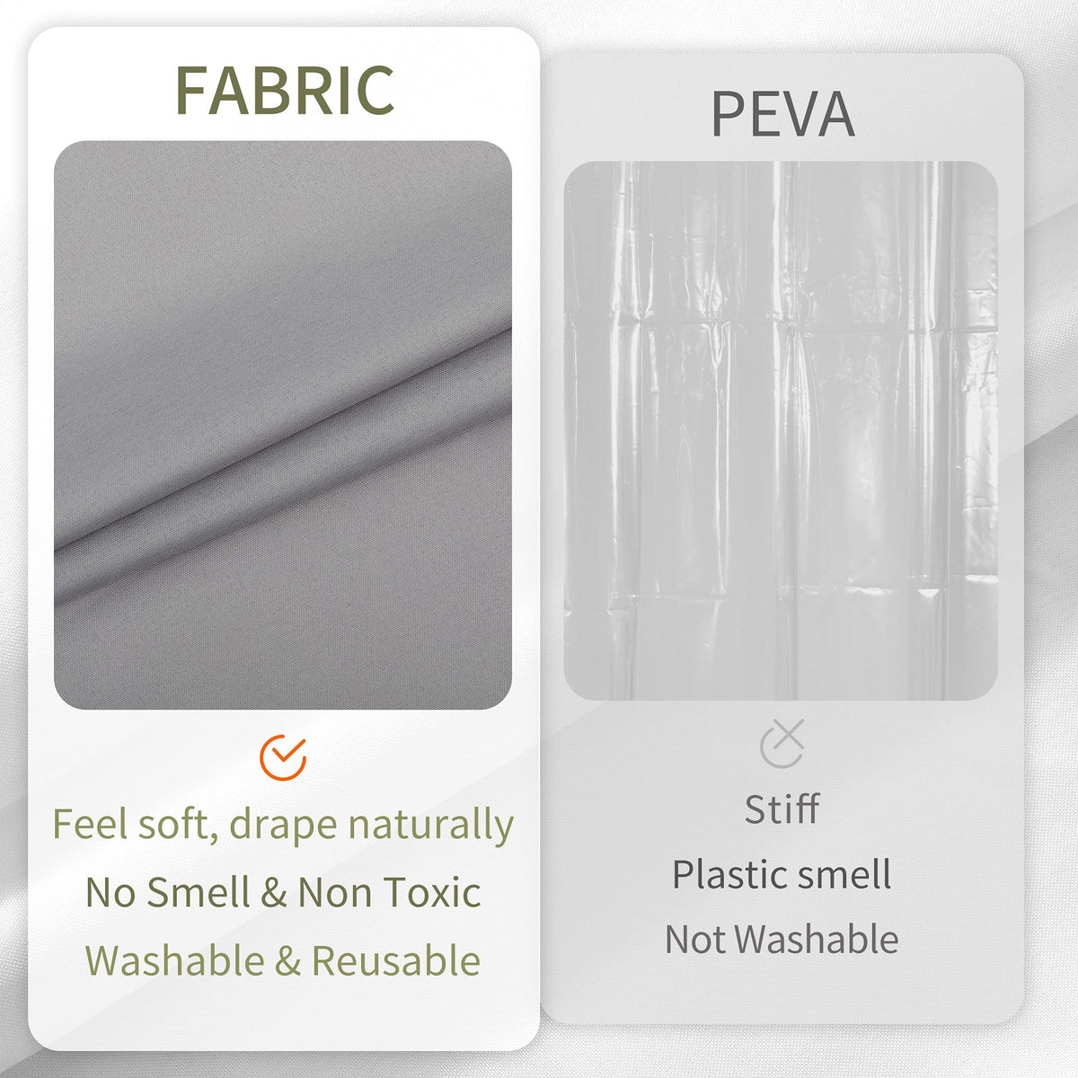 Q: Is the material of this shower curtain liner safe for my family?A: Absolutely, the ALYVIA SPRING shower curtain liner is odorless, PVC-free, and BPA-free, ensuring a safe and healthy environment in your bathroom.