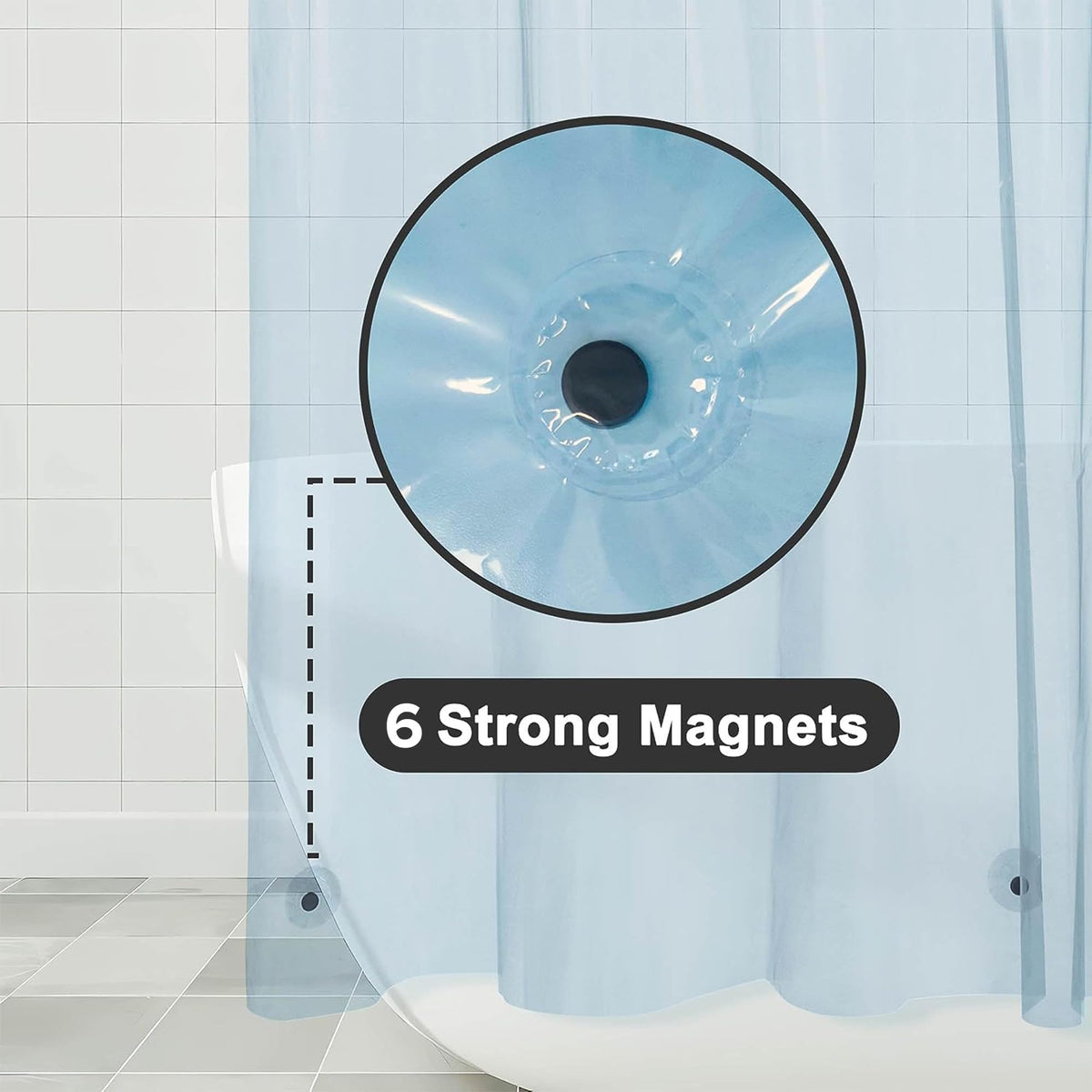 Barossa Design Clear Blue Shower Curtain Liner - Peva Heavy Duty Shower Liner With 6 Magnets And Metal Grommets, 72' X 72' Waterproof Shower Curtains For Bathroom - Clear Blue