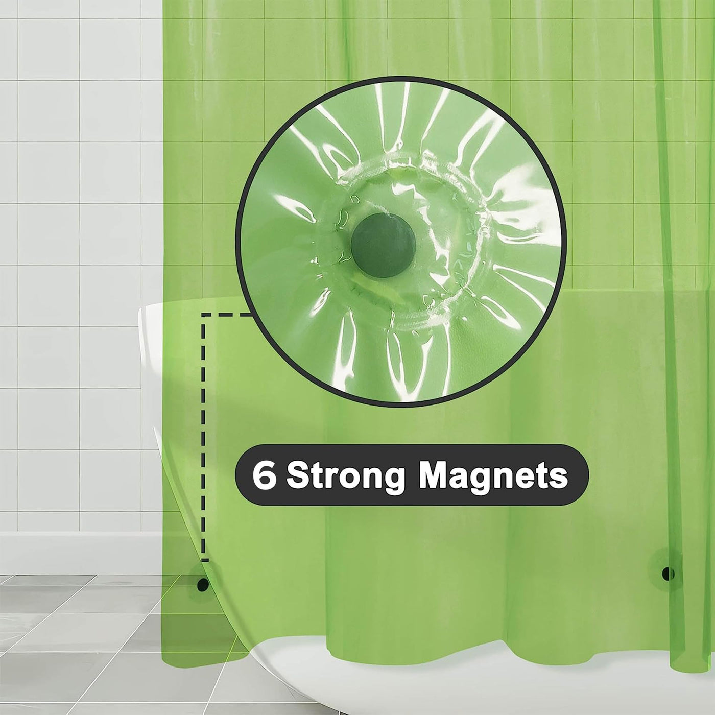 Barossa Design Clear Green Shower Curtain Liner - Peva Heavy Duty Shower Liner With 6 Magnets And Metal Grommets, 72' X 72' Waterproof Shower Curtains For Bathroom - Clear Green