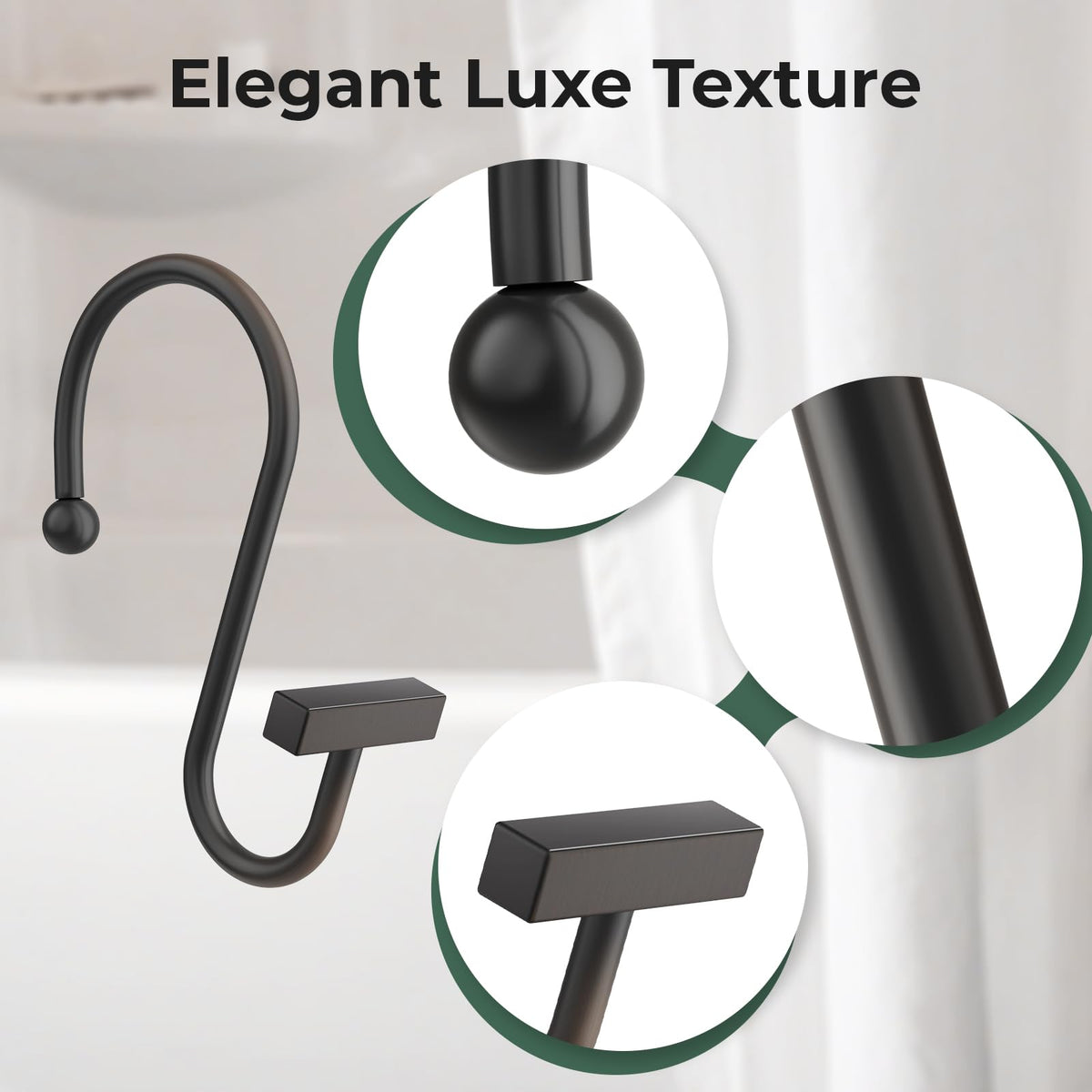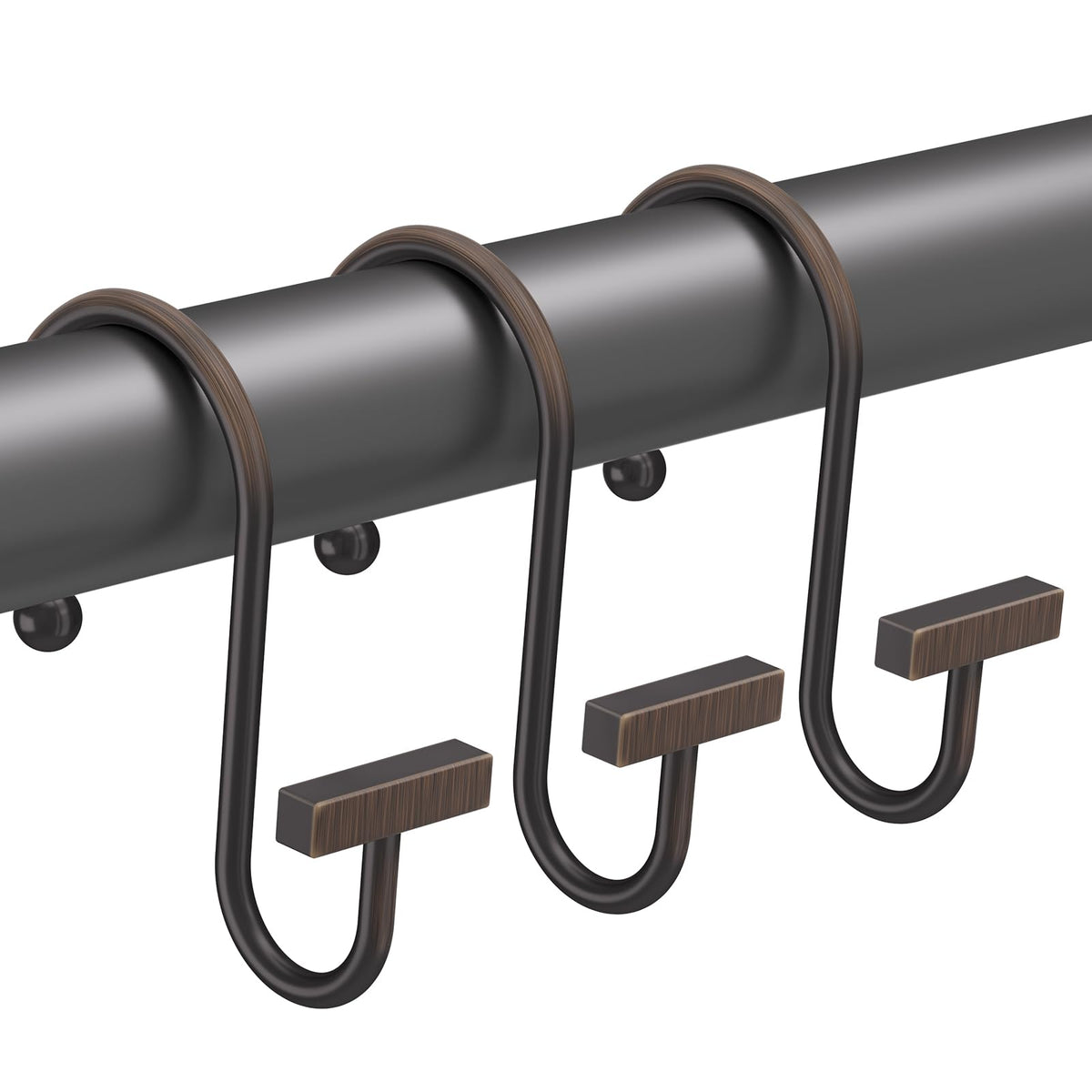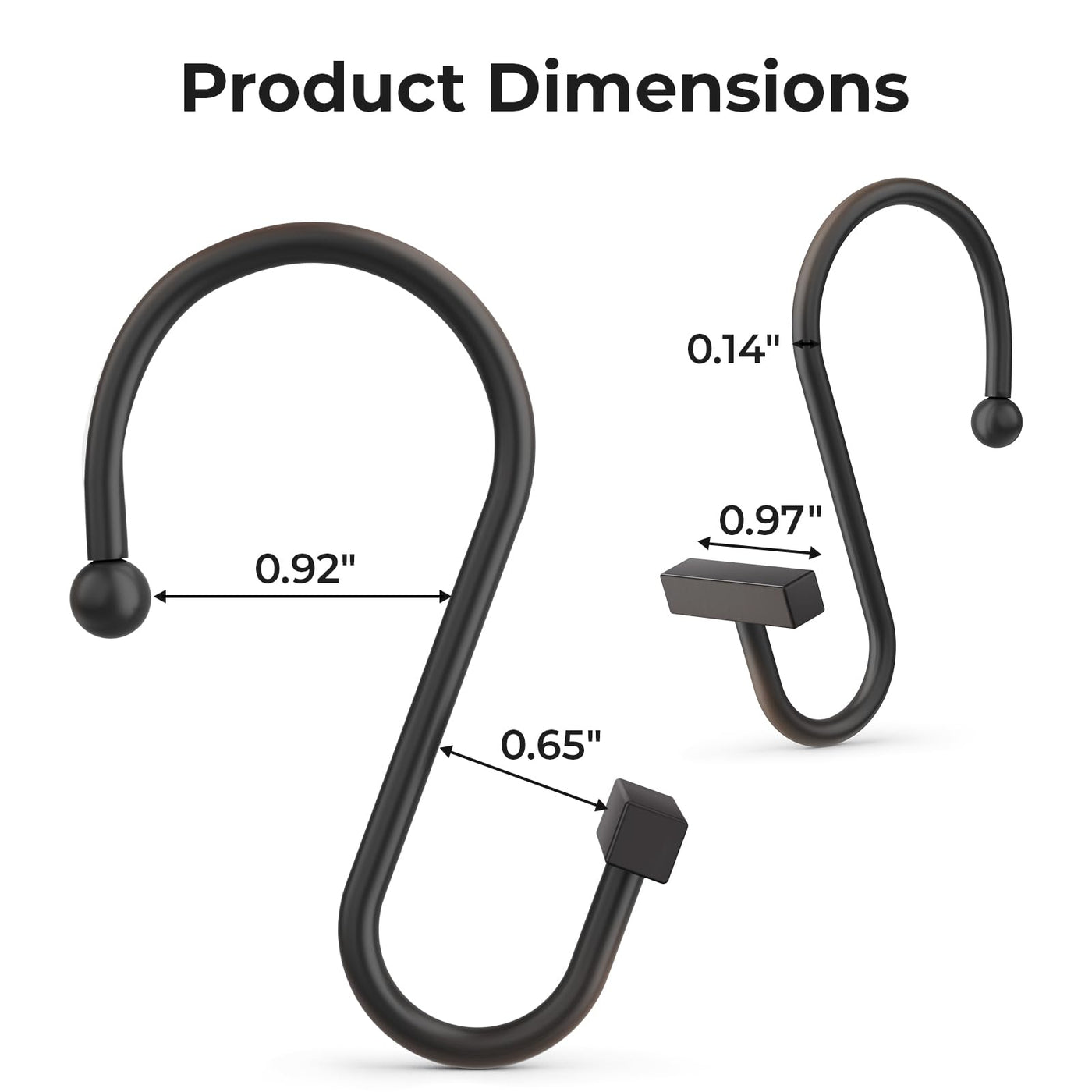 Bathway Square T-Bar S Shaped shower curtain hooks —a fusion of style and functionality for your bathroom. The unique design featuring clean-lined T-bars creates a modern, structured look, perfect for minimalist themes, adding sophistication to your space. Crafted from high-quality metal with an electroplated coating, these hooks offer prolonged durability by resisting rust and moisture, ensuring a pristine appearance and a longer lifespan. With tool-free installation, these hooks provide a secure fit, preventing slipping off the rod due to the ball head design and stopping the curtain from falling off the rings with the T-bar feature. Designed to hold up to 55 lbs, these sturdy hooks are perfect for heavy or double curtains, offering versatility beyond shower curtains. Explore their use in the bathroom, kitchen, bedroom, office, and garden for towels, pots, clothes, and more. These hooks are the ideal combination of elegance and reliability for all your hanging needs.