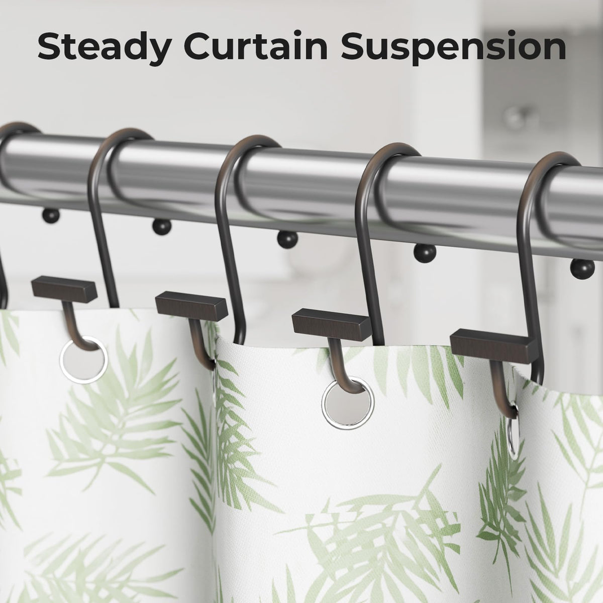 Q: How much weight can these shower curtain hooks support?A: These sturdy hooks can hold up to 55 lbs, making them ideal for heavy or double curtains, and providing versatility for various uses beyond just shower curtains.