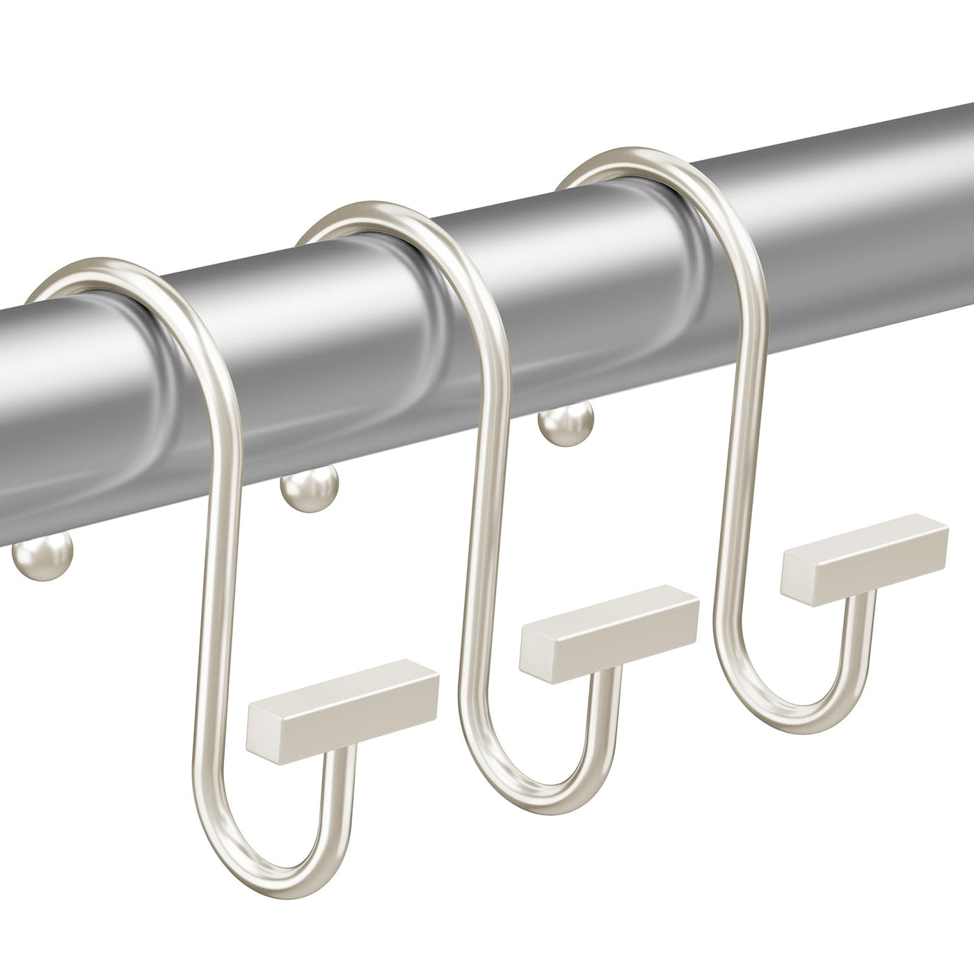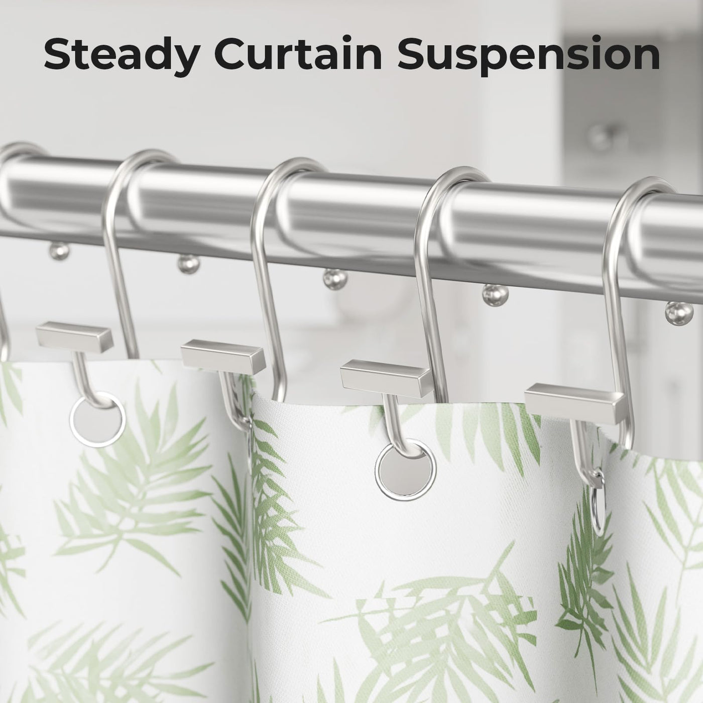 Q: How much weight can these shower curtain hooks hold?A: These sturdy hooks can hold up to 55 lbs, making them suitable for heavy or double curtains.