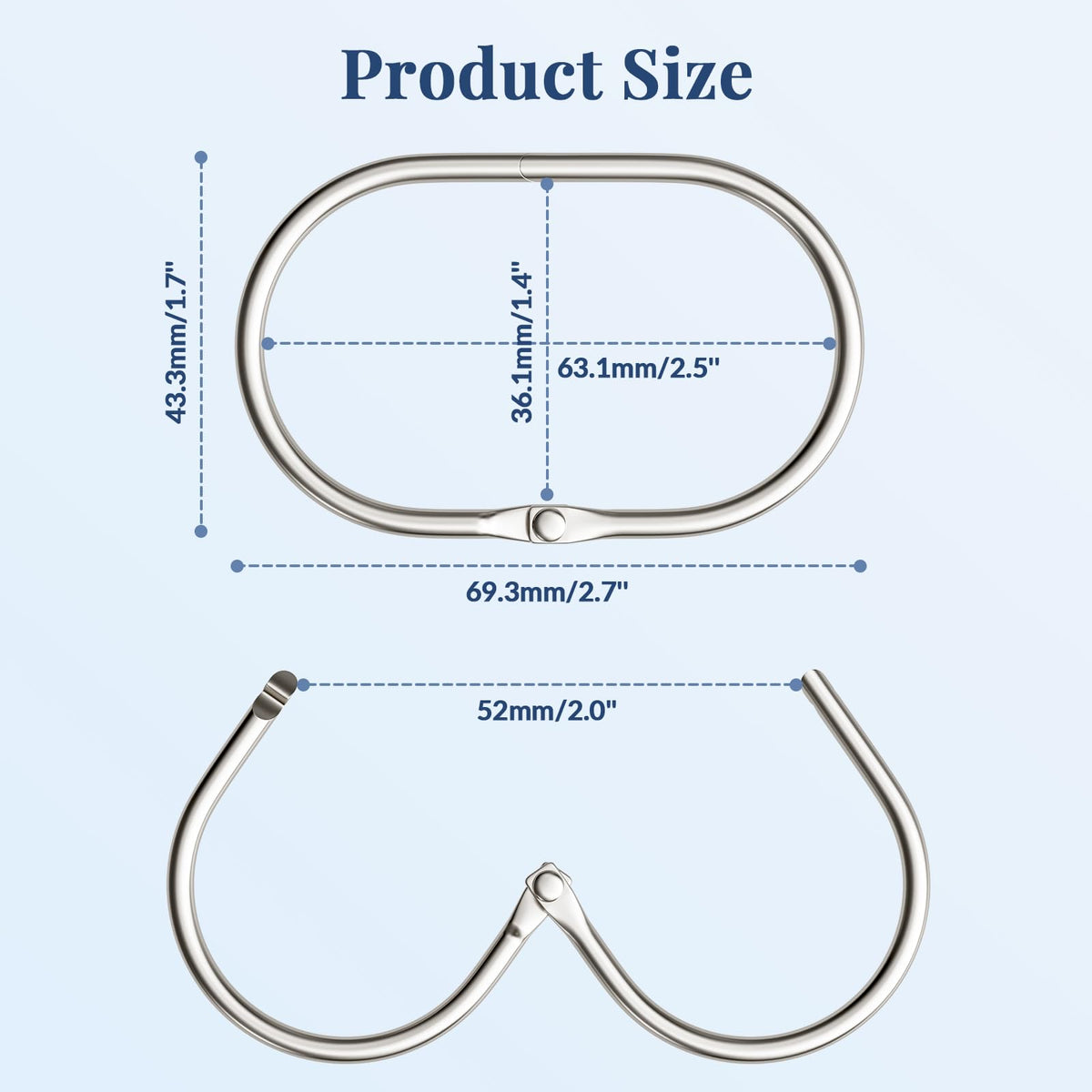Bathway shower curtain rings are made of selected metal materials, which are strong and not easy to rust. The surface is treated with electroplating process to ensure a beautiful surface of these shower curtain hooks. These shower rod hooks (ganchos para cortinas de baño)have a smooth and textured surface and classic and versatile colors that can perfectly match various bathroom styles. These metal shower curtain hooks features a closed opening design, which effectively prevents hanging items from slipping. With these rust proof shower curtain hooks, you don't have to worry about the shower curtain and liner falling off these silver shower hooks. These metal shower curtain hooks features a closed opening design, which effectively prevents hanging items from slipping. With these rust proof shower curtain hooks, you don't have to worry about the shower curtain and liner falling off these shower curtains hooks.