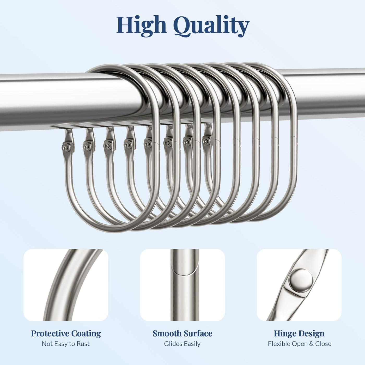 Bathway Shower Curtain Rings, Shower Curtain Hooks 12 Pcs Anti-Drop Shower Rings For Curtain, Metal Shower Curtain Rings Rust Proof, Brushed Nickel Shower Hooks For Shower Curtain Rod Bathroom