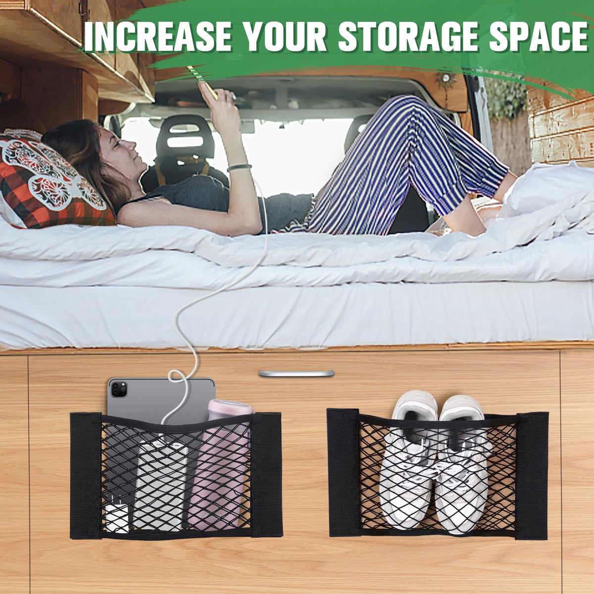 Bigmeta 4PCS RV Cargo Storage Mesh Net, Elastic Stretchable Netting Pocket with 8 Adhesive Strip Wall Sticker for SUV, Truck(17.