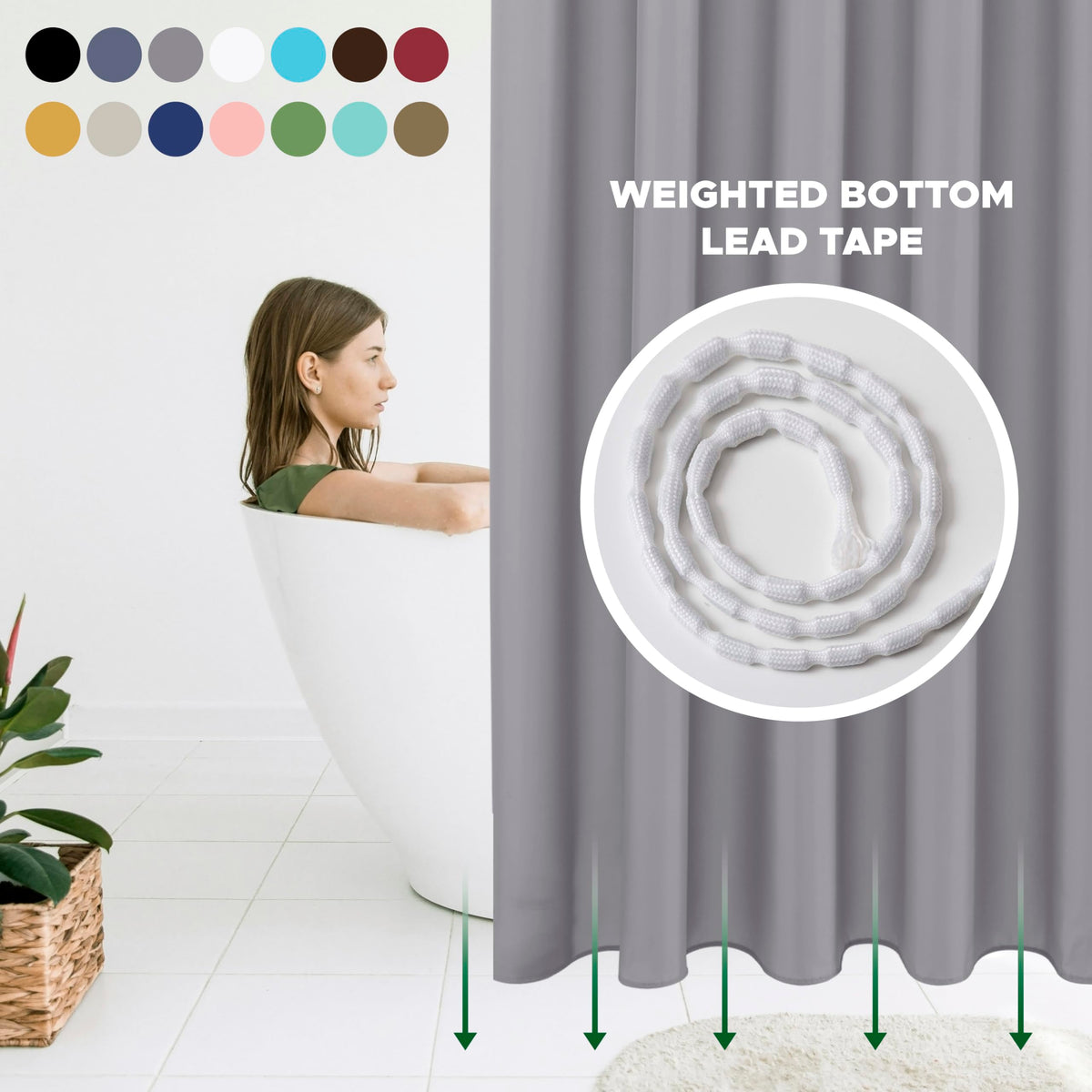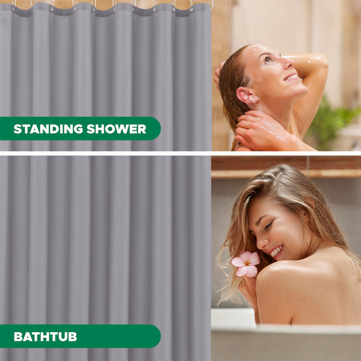 Biscaynebay Extra Long Fabric Shower Curtain Liner, Water Resistant Bathroom Curtains, Rust Resistant Grommets Top Weighted Bottom Machine Washable, Silver Grey 72 Inches Width By 84 Inches Length