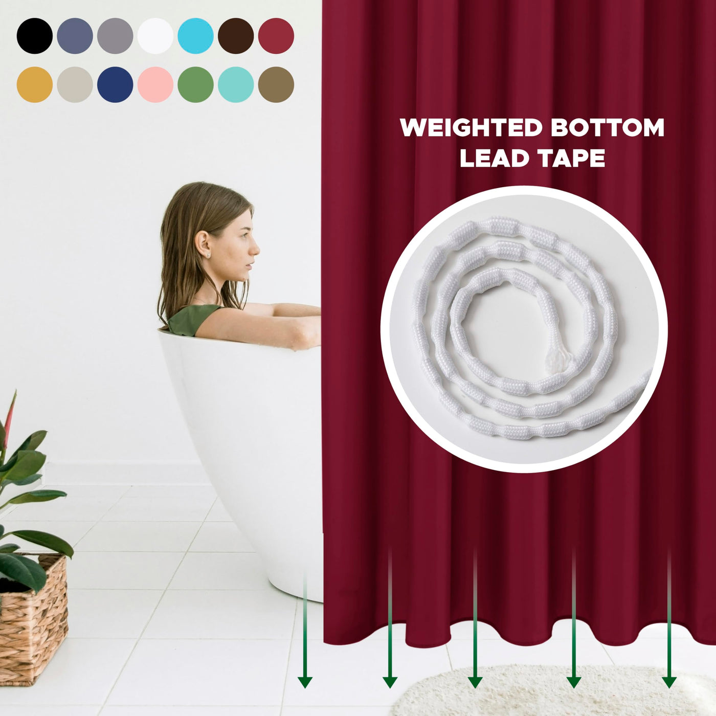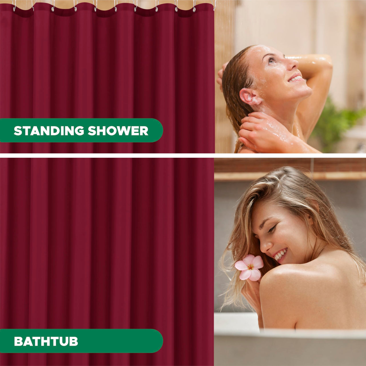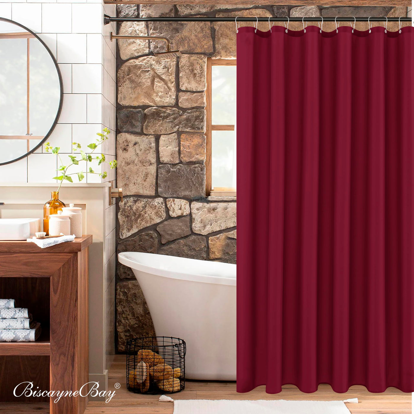Biscaynebay Extra Long Fabric Shower Curtain Liners 72' Width By 84' Length, Burgundy Water Resistant Bathroom Curtains Rust Resistant Grommets Top Weighted Bottom Machine Washable