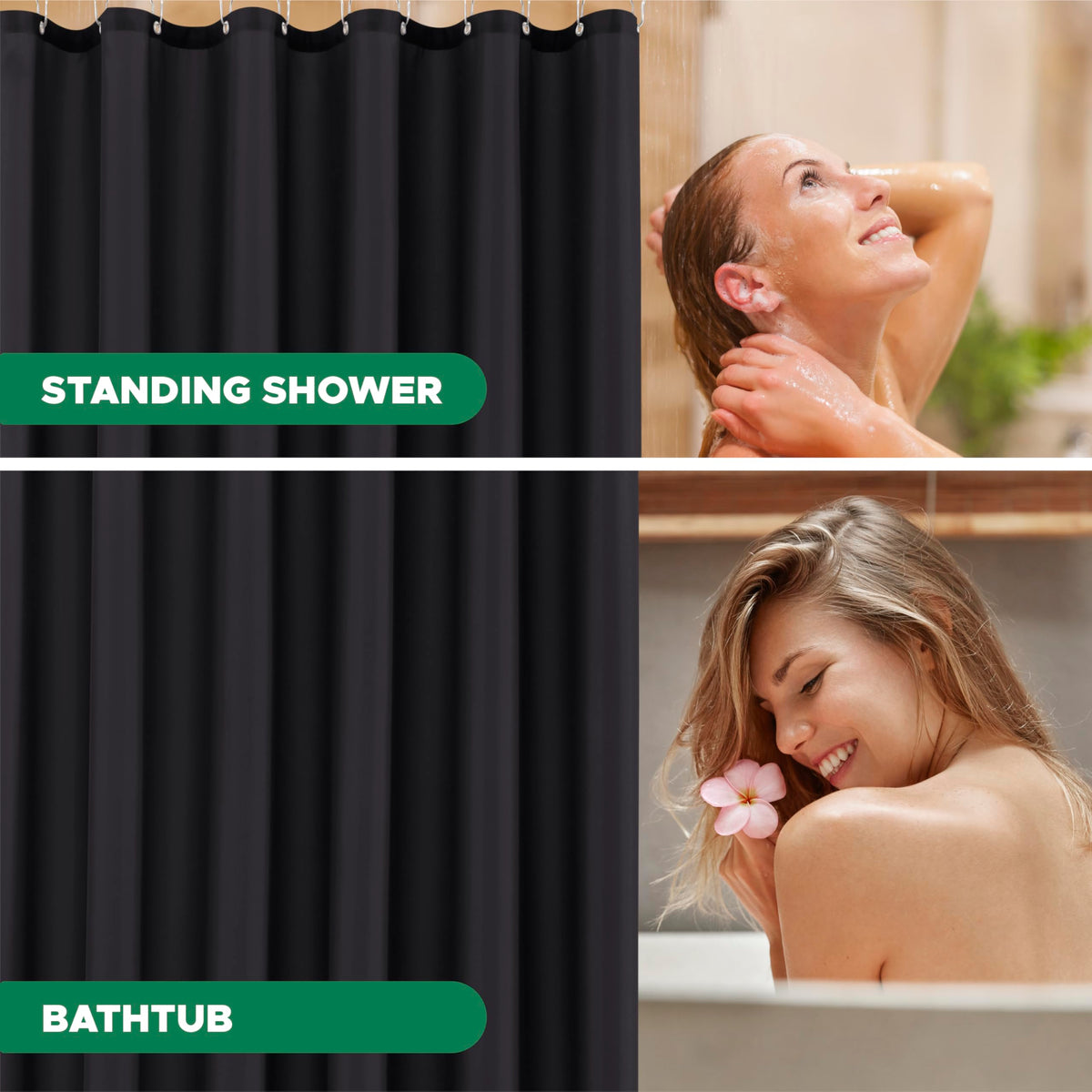 Biscaynebay Fabric Extra Wide Shower Curtain Liners108 Width By 72' Length, Black Water Resistant Bathroom Curtains, Rust Resistant Grommets Top Weighted Bottom Machine Washable