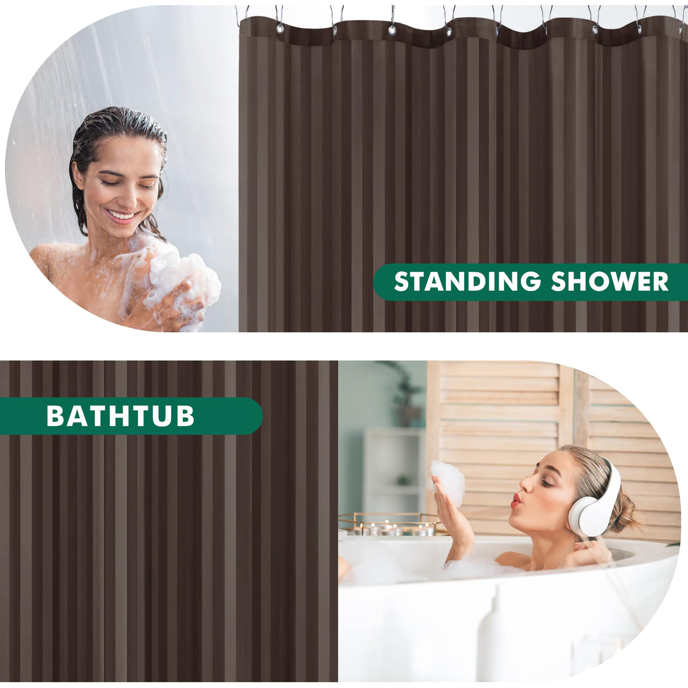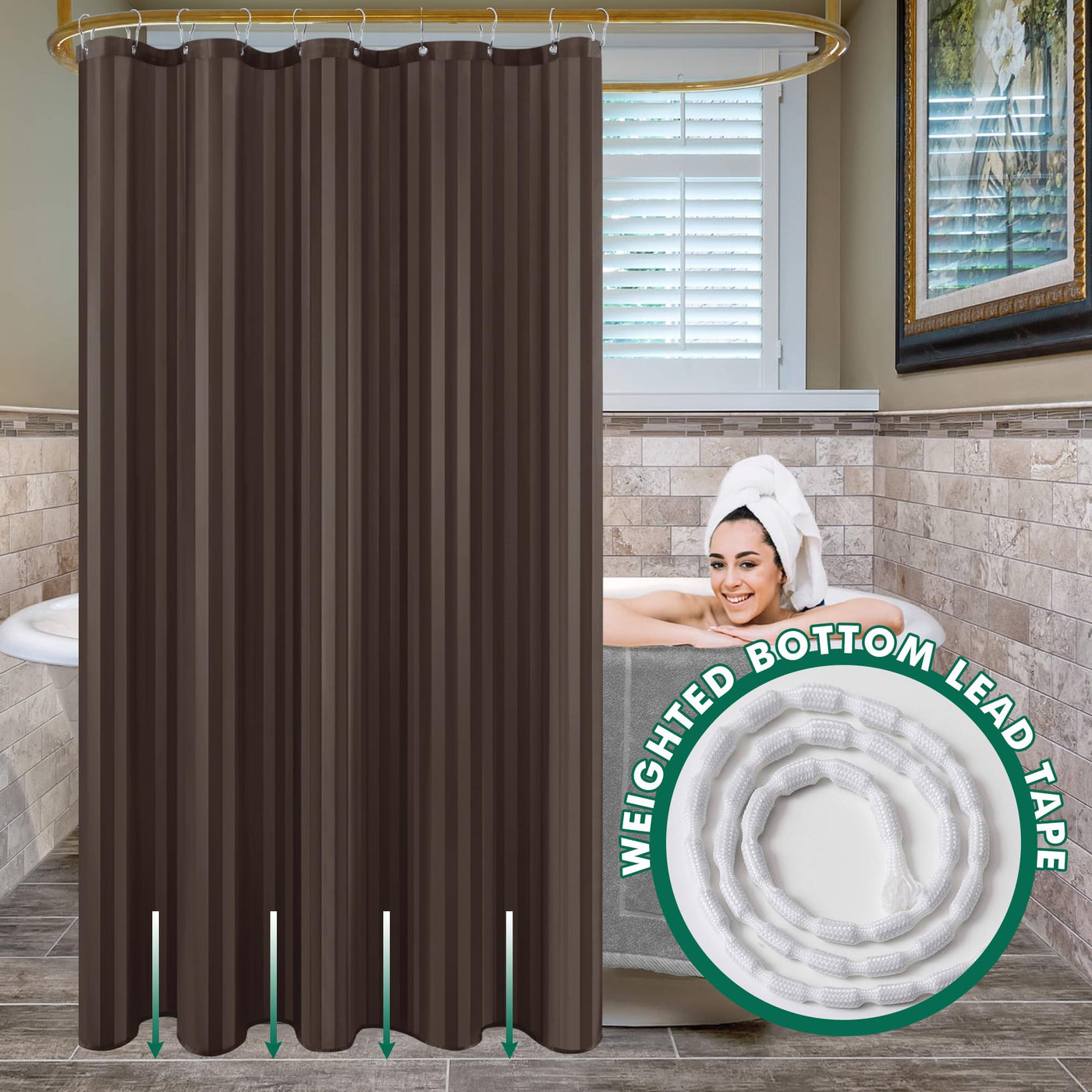 Biscaynebay Fabric Shower Curtain Or Liner 72 Inches By 72 Inches, Brown Water Repellent Damask Stripes Bathroom Curtains Machine Washable