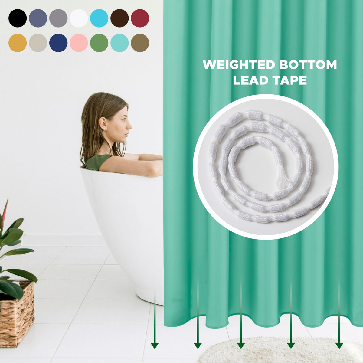 Biscaynebay Hotel Quality Extra Long Fabric Shower Curtain Liners, 72 Inch Width By 84 Inch Length, Teal Bathroom Curtains, Water Resistant Rust Resistant Grommets Top Weighted Bottom Machine Washable
