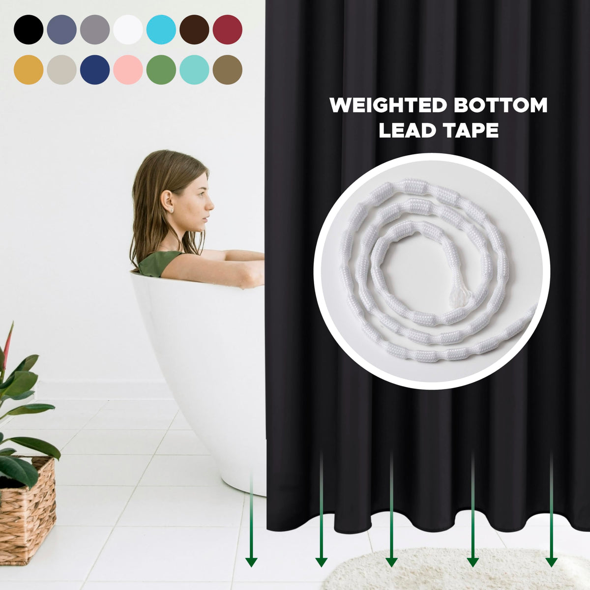 Biscaynebay Hotel Quality Fabric Shower Curtain Liners 66' Width By 72' Length, Black Water Resistant Bathroom Curtains, Rust Resistant Grommets (11 Holes) Weighted Bottom Machine Washable