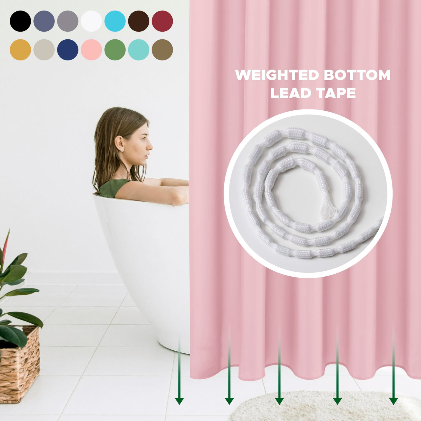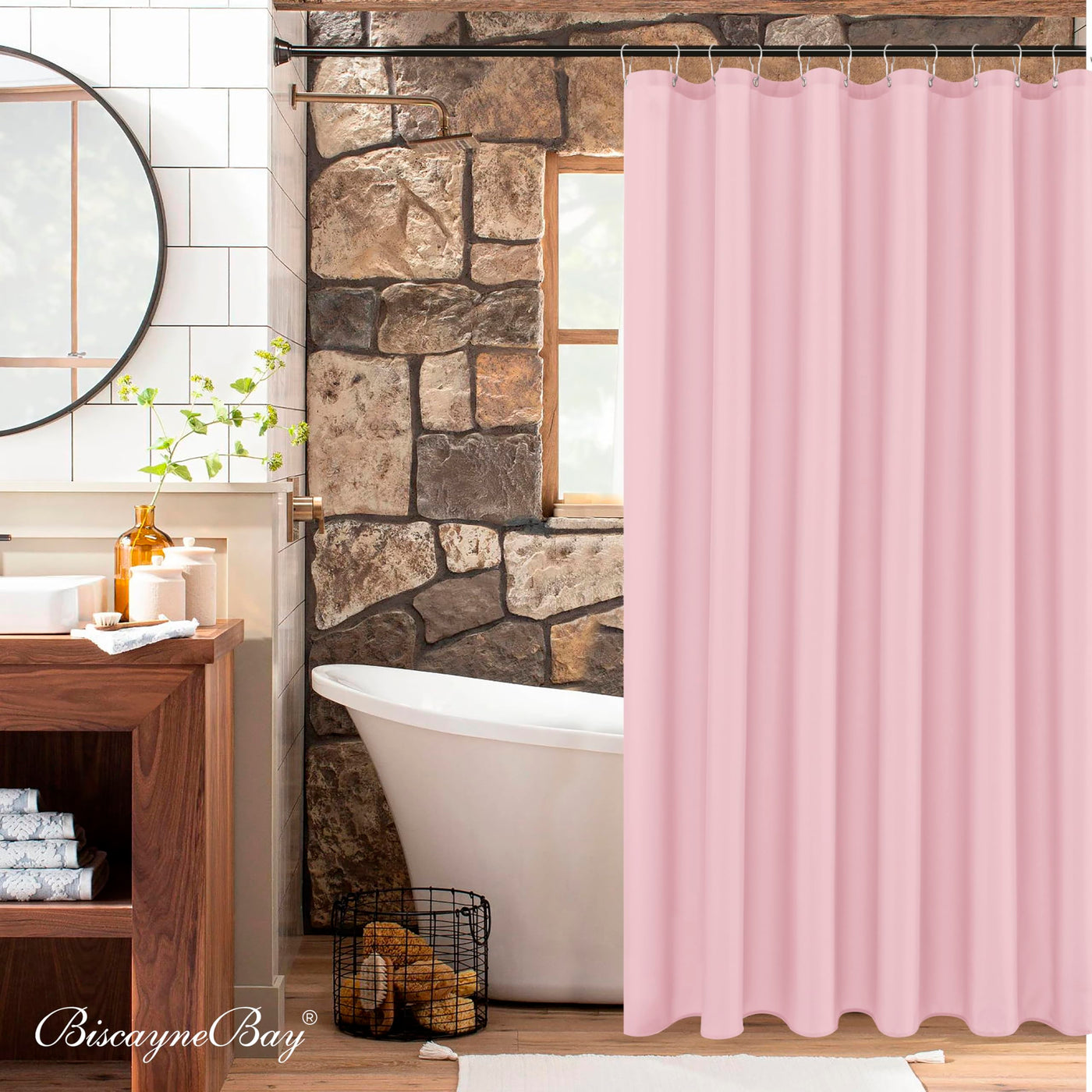 Biscaynebay Hotel Quality Fabric Shower Curtain Liners 72 Inch Width By 84 Inch Length, Pink Water Resistant Bathroom Curtains Rust Resistant Grommets & Weighted Bottom Hem Machine Washable