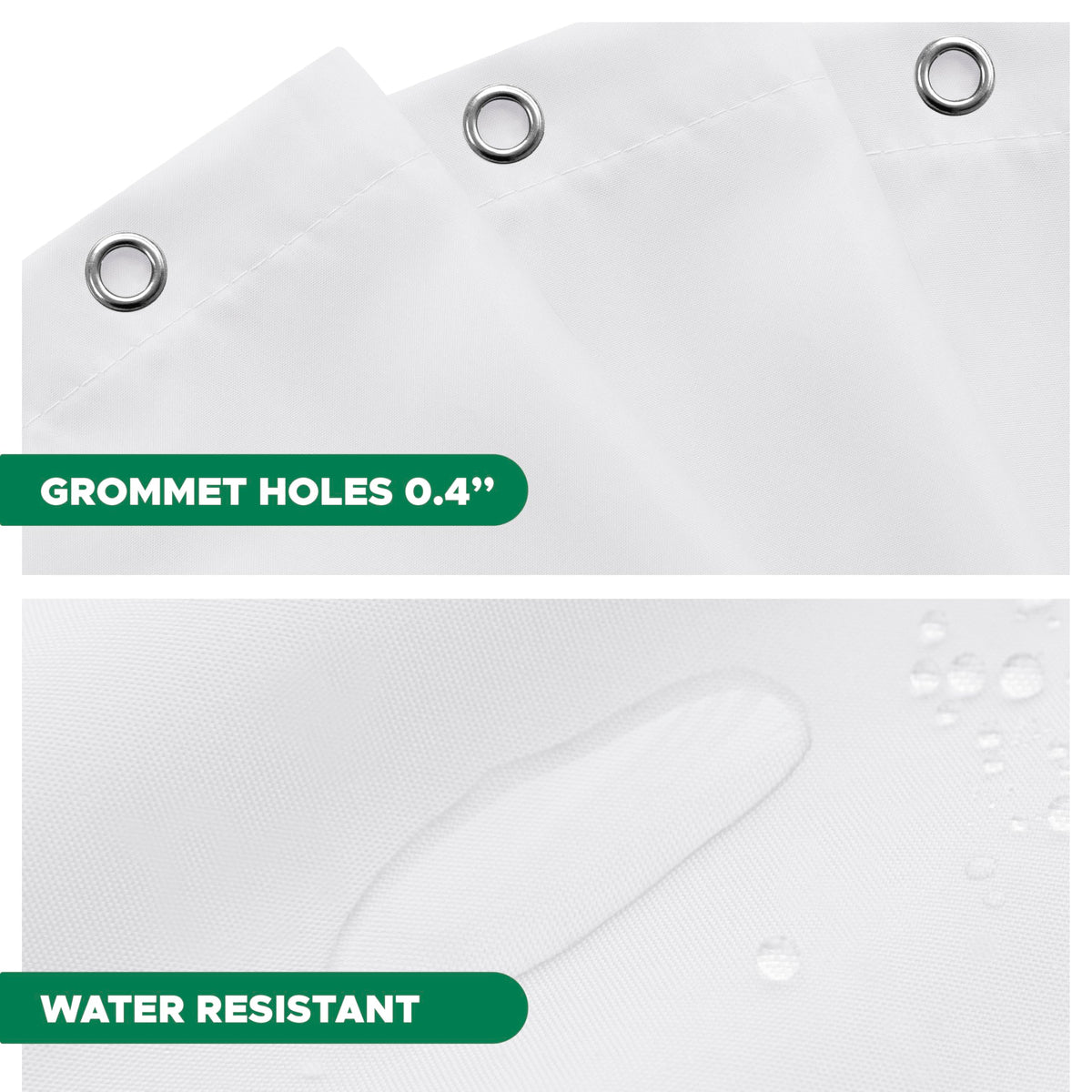Q: Is the fabric of the shower curtain liner water resistant?A: Yes, the shower curtain liner is made from heavy weight premium polyester fabric that is water repellent and effectively keeps water inside the shower or bathtub.