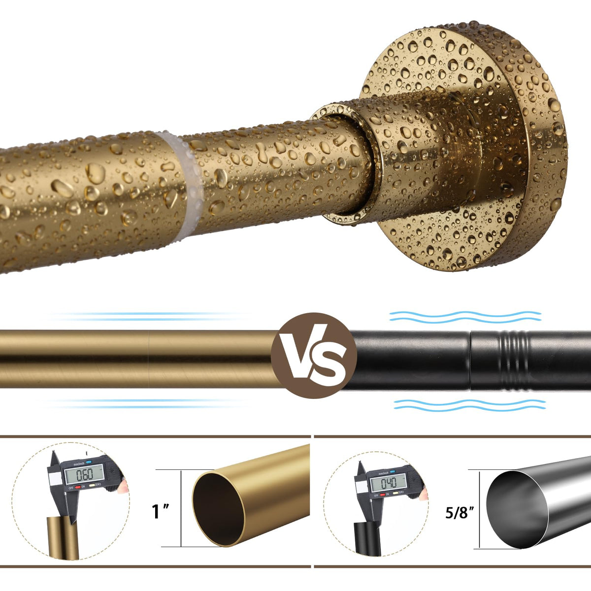 Heavy Duty: Unique 1cm Thick Steel Connectors for 2-way connection , Provide Powerful Support While others only 0.3mm. This Heavy Duty Shower Curtain Rod Max Load 40 Lbs.