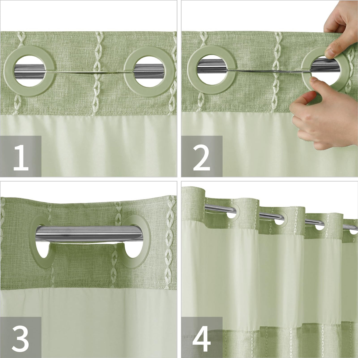 Eachope No Hook Long Shower Curtain Set With Snap-In Fabric Liner,Linen Ultra Thick Fabric With Tassels,Boho Chic Modern Farmhouse Country Neutral Cloth Shower Curtains For Bathroom,Sage Green,71X80