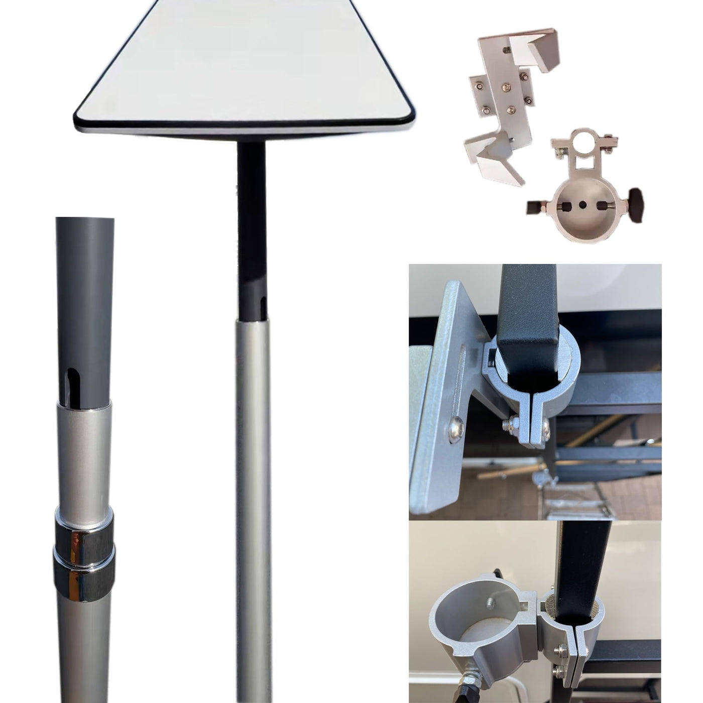 EEZ RV Products Telescopic 10ft Pole with Starlink Adapter and RV Ladder Mounting Bracket Kit (GEN 2 / V2) - Fits 1.0 Square L