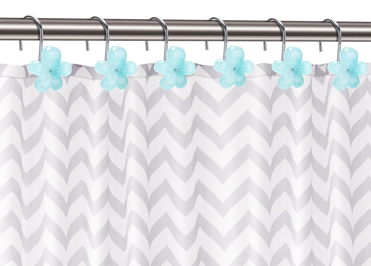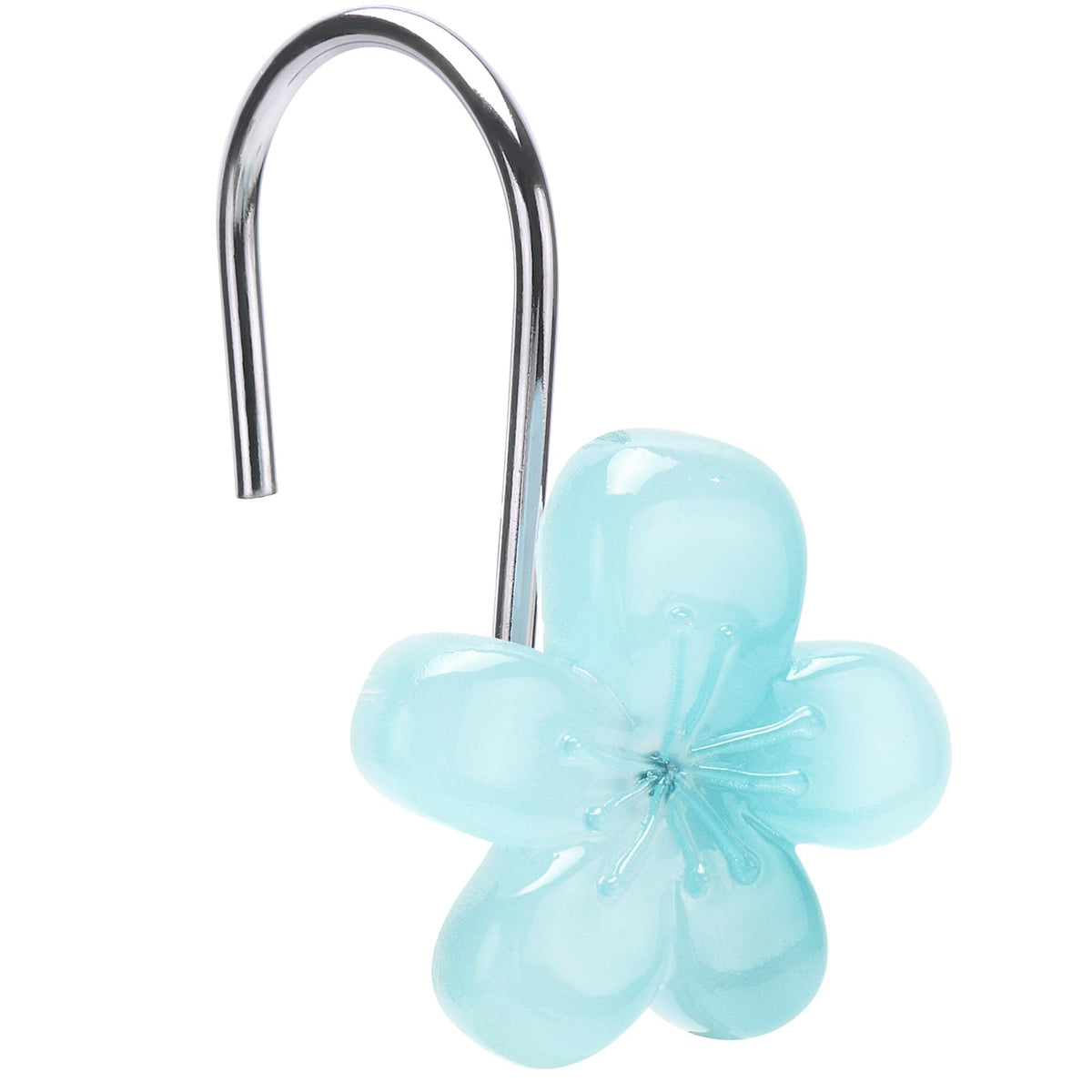 Flower Themed Shower Curtain Hooks, Glow In The Dark Bathroom Decor For Kids, Unique & Simple Look Decorative Shower Curtain Hangers, Cool Blue
