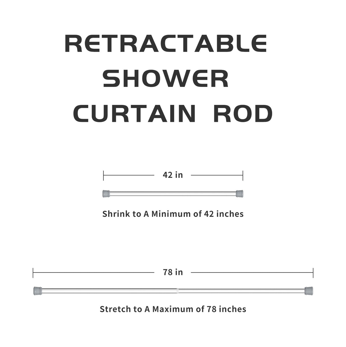 Q: What is the adjustable range of the Ginbel Direct Shower Curtain Rod?A: The Ginbel Direct Shower Curtain Rod is adjustable and can extend from 42 to 78 inches, making it suitable for various spaces like bathrooms, closets, and windows.