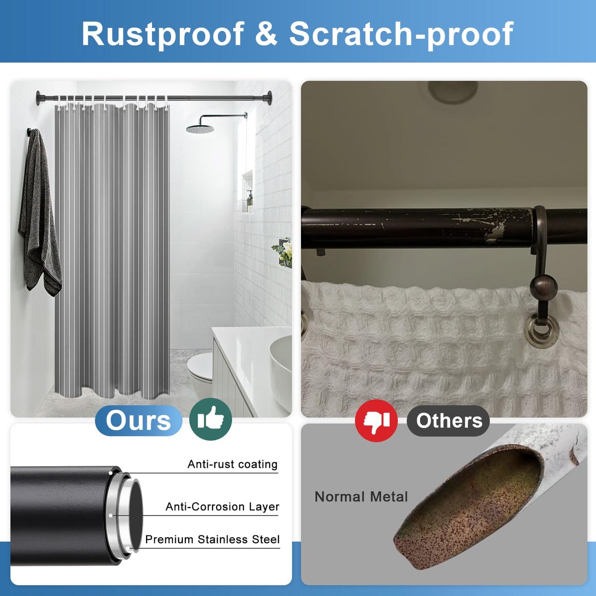 Q: Can this rod be used outdoors?A: Absolutely! The rust-resistant and scratch-proof finish makes this shower rod suitable for both indoor and outdoor use, ensuring durability in various environments.