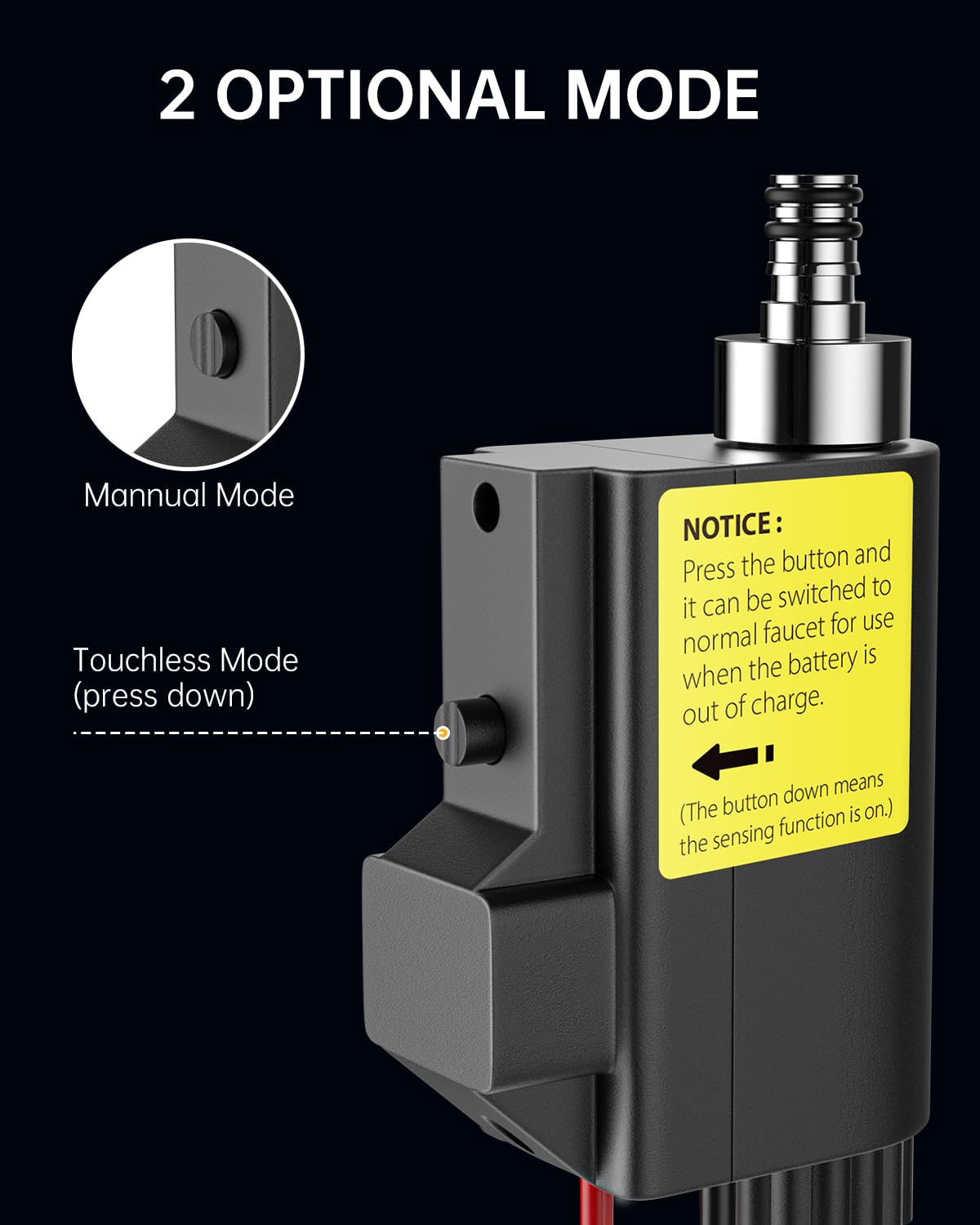 Q: How does the touchless feature of the Hiqufet kitchen faucet work?A: The Hiqufet Touchless Kitchen Sink Faucet utilizes a smart motion sensor that detects hand movements. Simply wave your hand near the sensing area to automatically turn the water on or off, making it easy to use, especially for those with mobility issues.