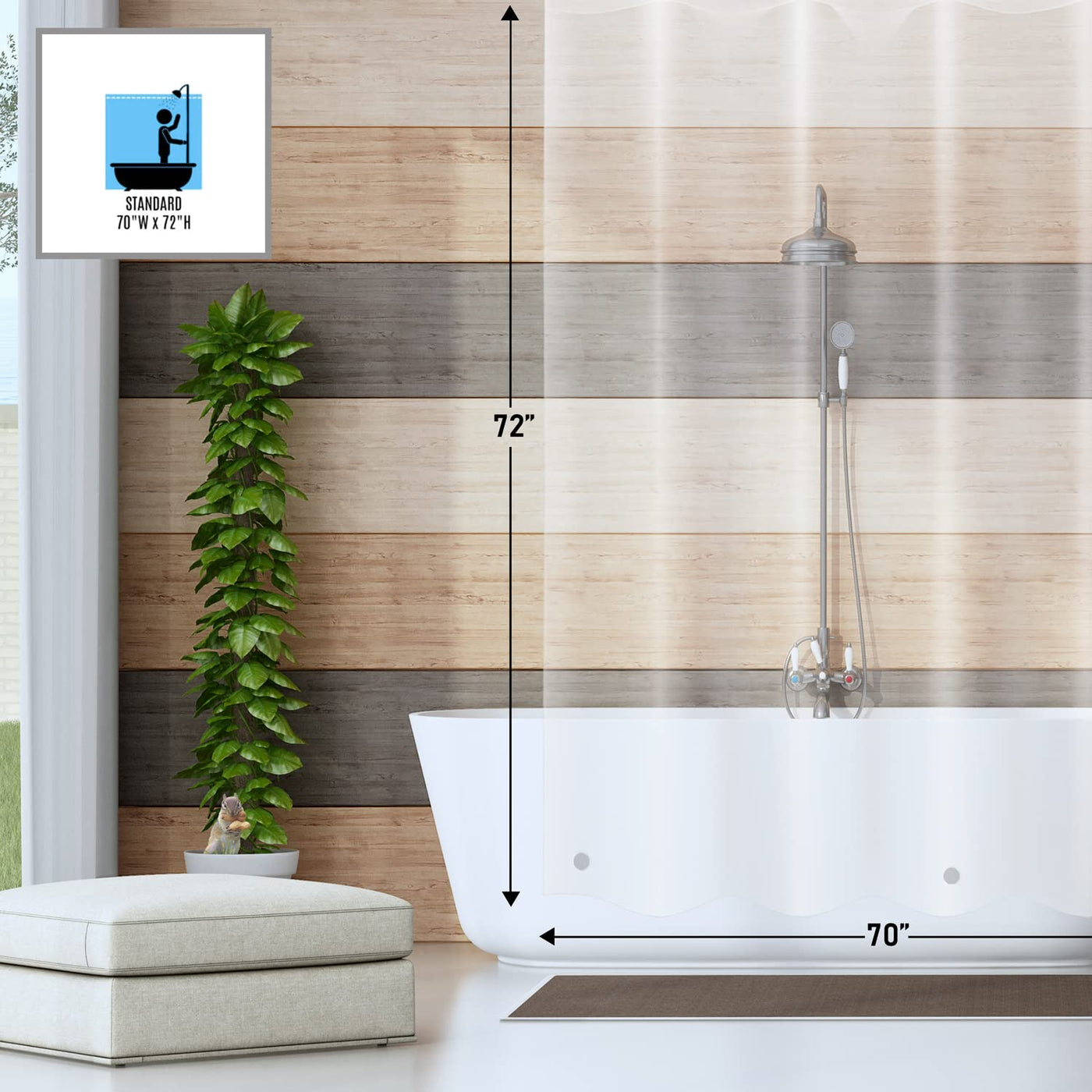 Q: What are the dimensions of the shower curtain liner?A: The JSO HOME Shower Curtain Liner measures 72 inches in length and 70 inches in width, making it a perfect fit for standard shower sizes.