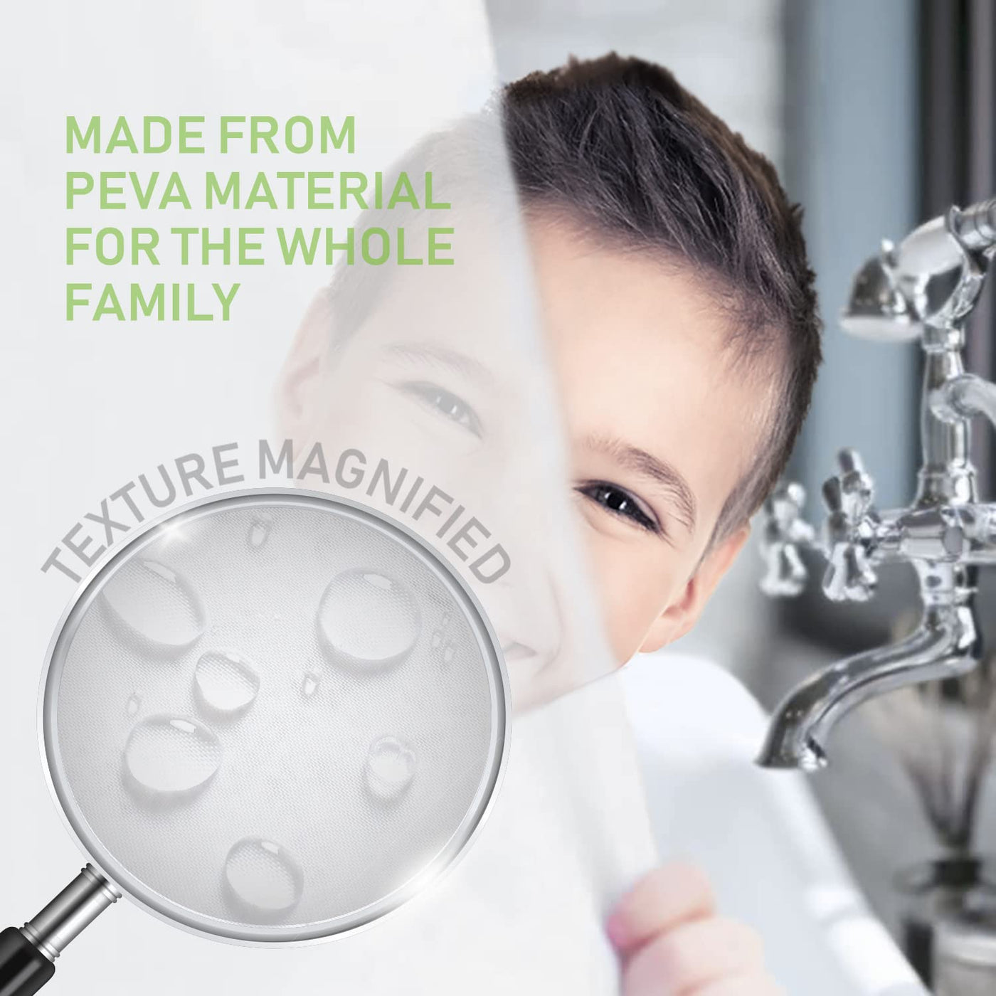 Premium PEVA Shower Curtain Liner: By Bath Essentials. The Premium PEVA Shower Curtain Liner is waterproof and has hotel grade thickness. Magnets at the bottom hem give the liner weight and keep it in place. It also comes with anti-rust grommets to protect the holes and prevent the liner from tearing. Made of 100% PEVA Material