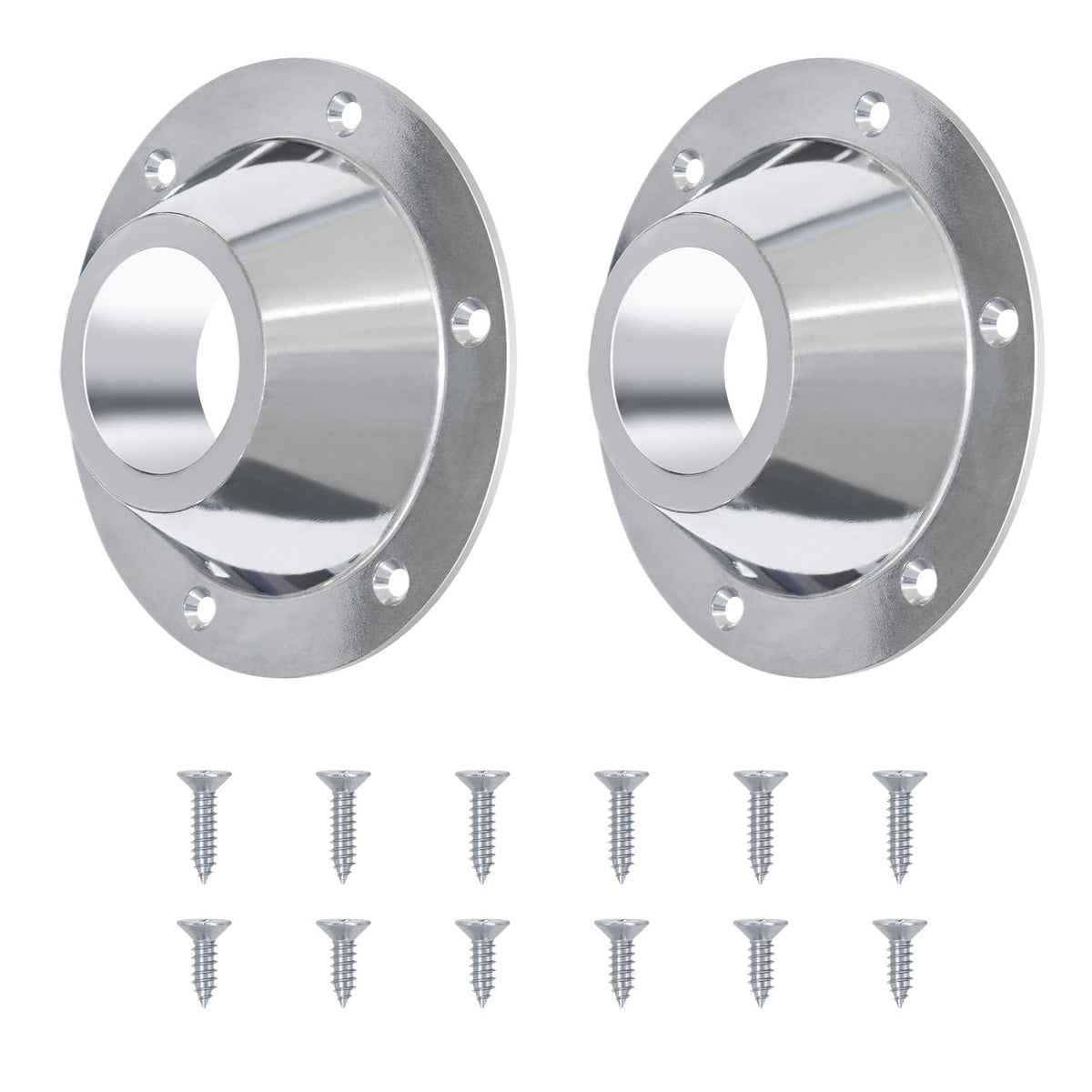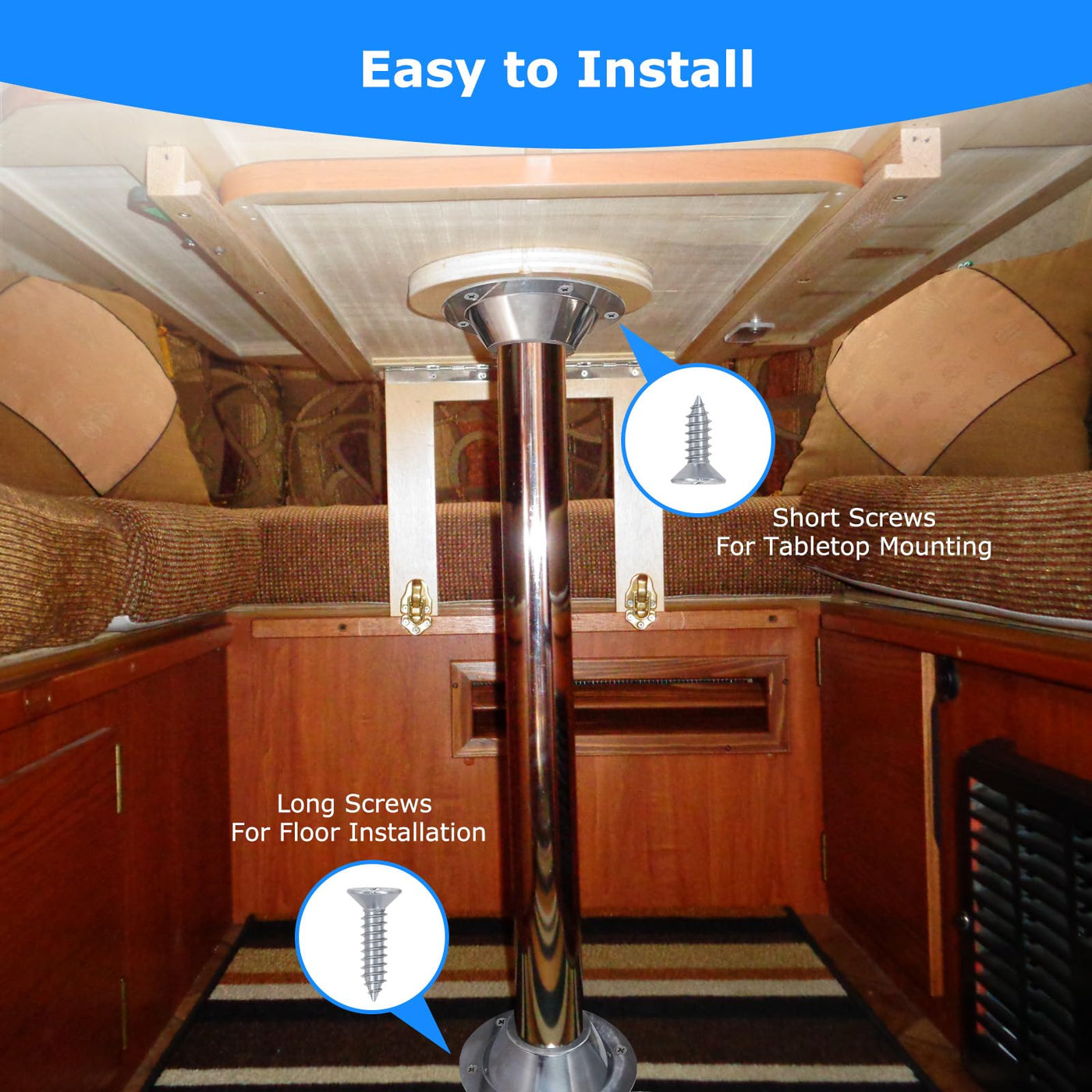 JYINCPED RV Table Base Mount Flange with 6 Mounting Holes, No More Wobbly Table in Your Camper JYINCPED RV pedestal table base is designed with 6 pre-drilled mounting holes for security to hold the table up. Compatibility Mounting flange for pedestal or centered base table. Universal fit for RV, travel trailer, and camper dinette table Specification Outer diameter: 6.5'' Inner diameter: 2.25'' Package Include 2 x RV Table Base 8 x Long Screws 8 x Short Screws