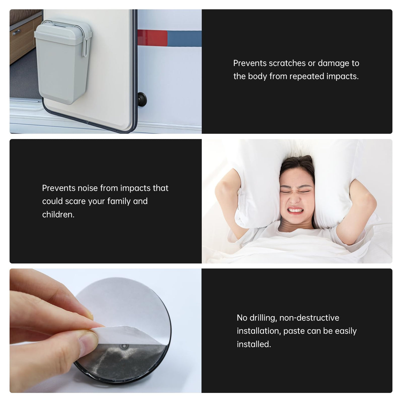 Specifications: Material: magnet and silicone mainly Color: white Size: about 1.8 x 1.9 inches Package includes: 1 x magnetic RV door holder 2 x double-sided tapes Features: -The magnetic door catch is made of silicone and iron materials. The silicone is smooth and flexible, which can effectively alleviate impact and reduce damage to the door. -The camper door stopper is equipped with double-sided tape and screws and can accept hole-less installation and drilling installation to meet your different needs. -The spring and flexible silicone inside the trailer door holder can effectively relieve impact, allowing your door to close gently and slow down the noise. Notes: Manual measurement, please allow slight errors on size. The color may exist a slight difference due to different screen displays.
