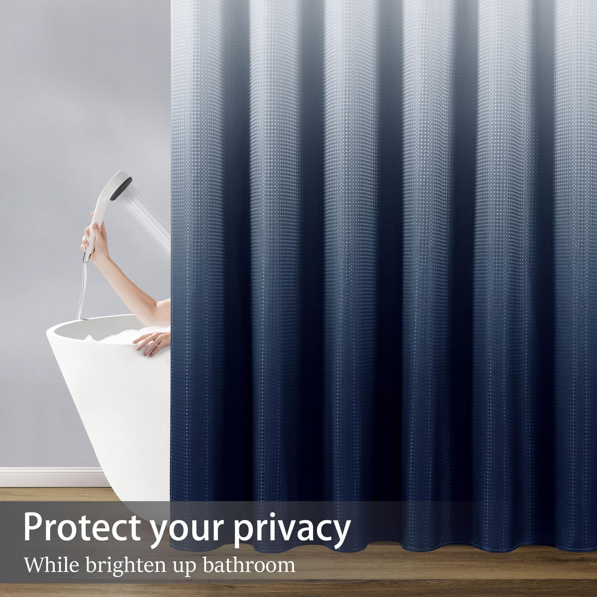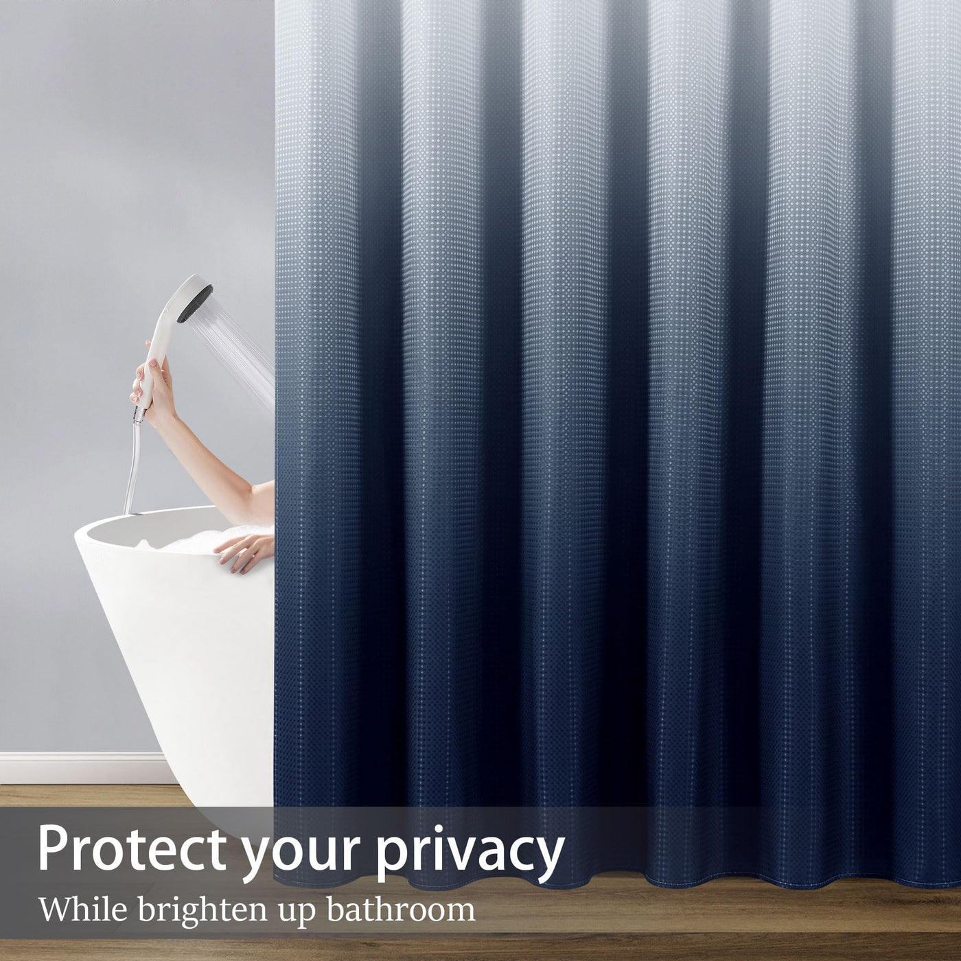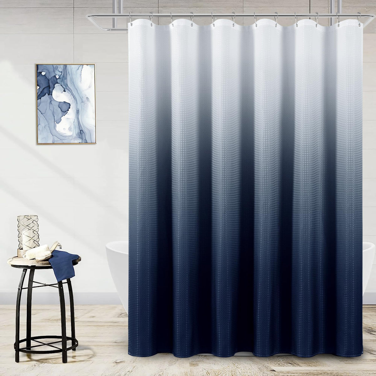 Naturoom Navy Blue Shower Curtain Modern Blue And White Shower Curtains For Bathroom Navy Shower Curtain With 12 Hooks, Men Blue Ombre Waffle Textured Fabric Hotel Quality Shower Curtain, 72X72