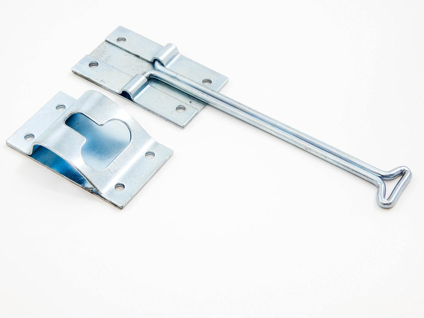Q: What material is the Red Hound Auto Door Catch Holder made of?A: The Red Hound Auto Door Catch Holder is made of heavy-duty steel, ensuring durability and strength. It is also zinc-coated for rust and weather protection, making it suitable for outdoor use.