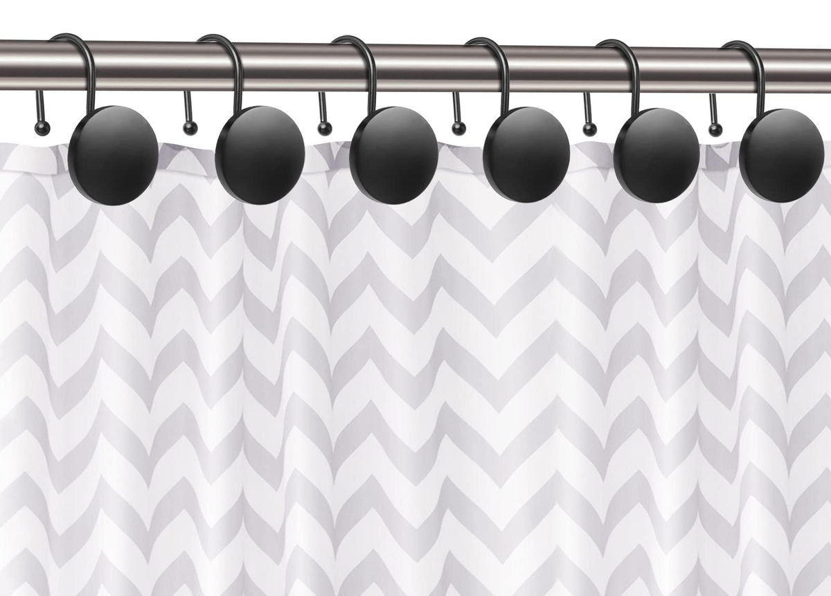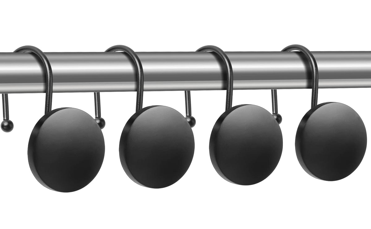 Round Button Resin Shower Curtain Hooks Set Of 12 Decorative Shower Curtain Hangers For Bathroom Classic Farmhouse Style Simple Modern Elegant Matte Black