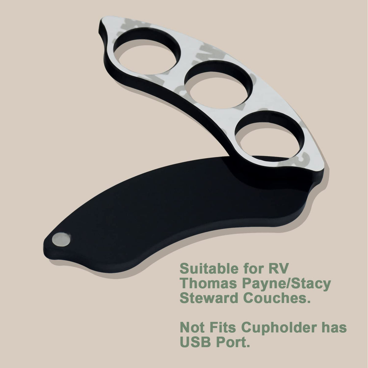 Q: Is the RV Cup Holder Button Guard compatible with all RV couches?A: The RV Cup Holder Button Guard is specifically designed to be compatible with Thomas Payne and Stacy Stewart couches. It is important to note that it does not fit cupholders with a USB port.