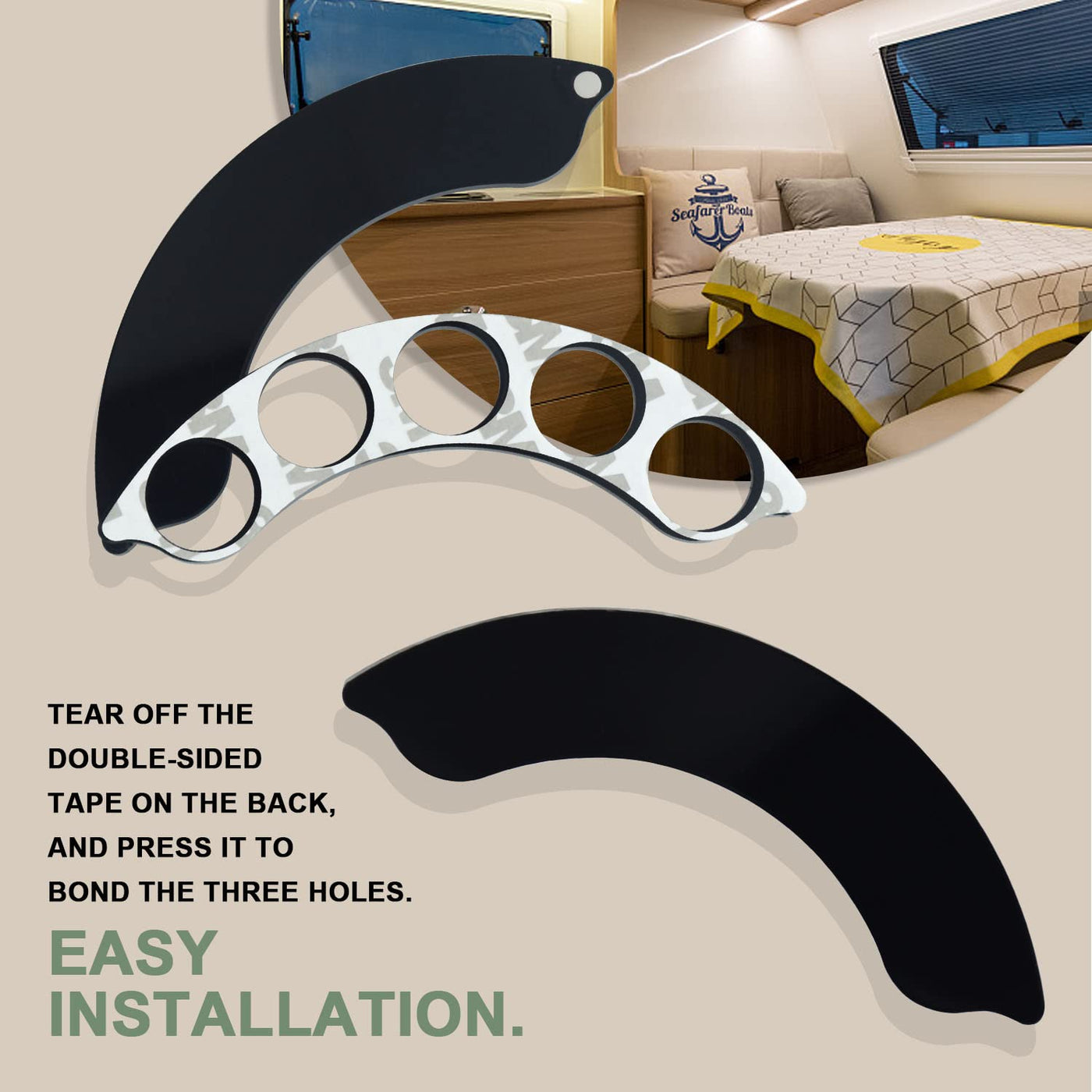 Q: What size does the button guard accommodate?A: The RV Cup Holder Button Guard is designed to fit five-hole configurations, ensuring compatibility with most standard RV cup holders.