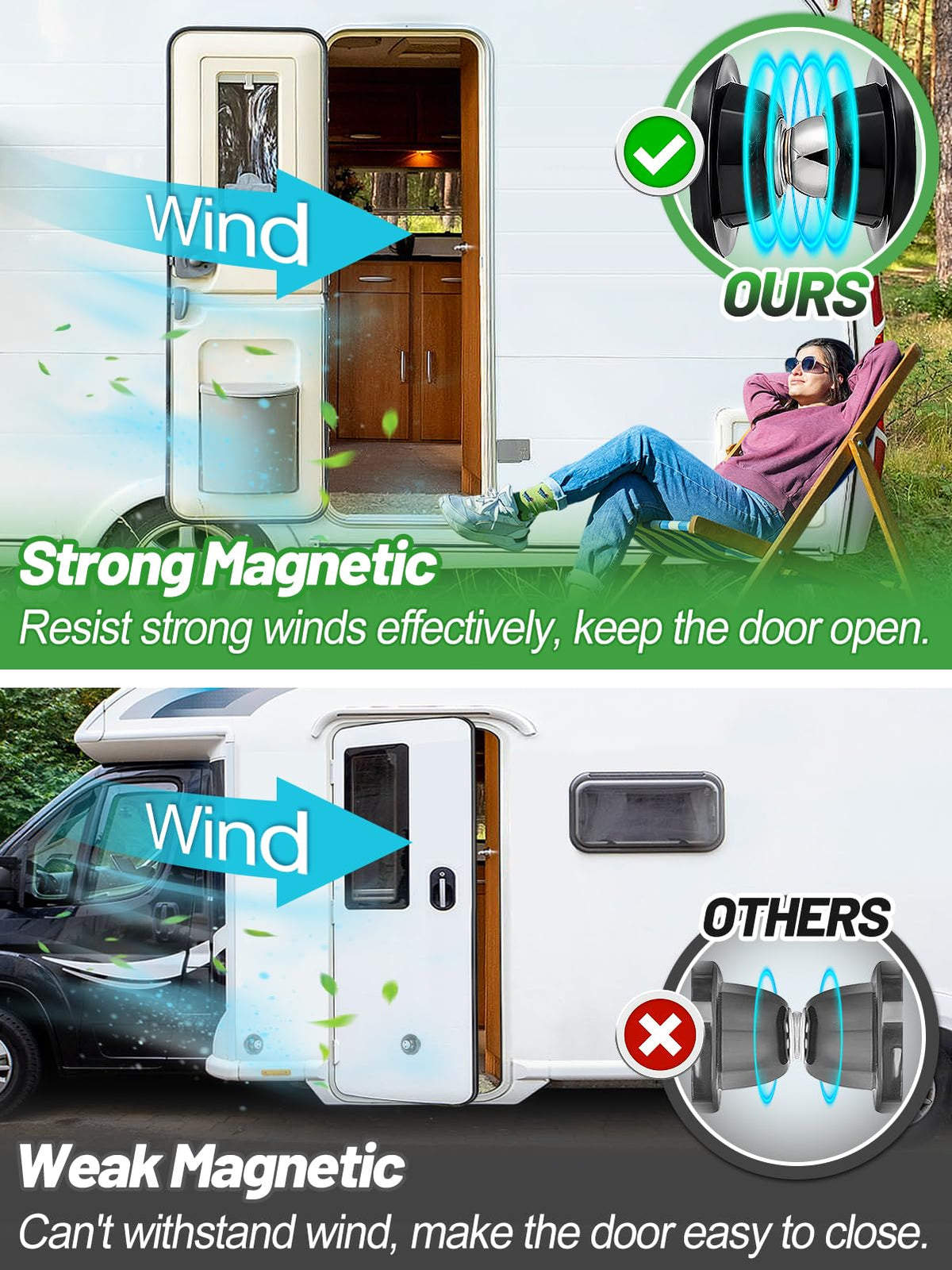 RV Magnetic Door Catch with Adhesives - Easy to Install Camper Trailer Door Holder, Sturdy Stopper for RV Accessories, 1 Pack