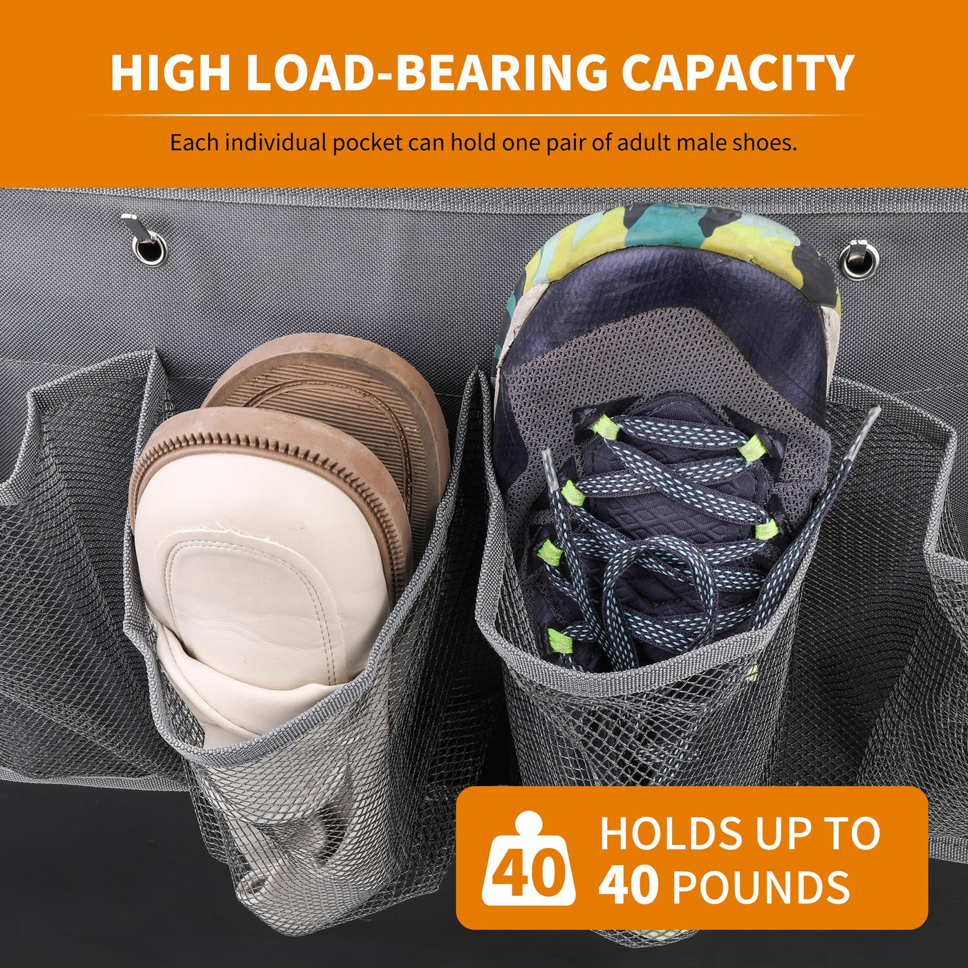 Q: Can the RV shoe organizer be used for purposes other than shoe storage?A: Yes, this versatile organizer can be used to store various items such as cleaning supplies, gloves, and tools, making it suitable for gardening benches and shed walls.