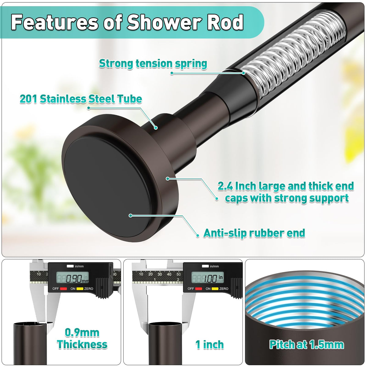 Shower Curtain Rod Adjustable 29-74 Inches, Spring Tension Shower Rod Stainless Steel 1 Inch Diameter Telescoping Curtain Rod For Bathroom, Windows Wardrobe, Non Slip, No Drilling, No Rust, Bronze
