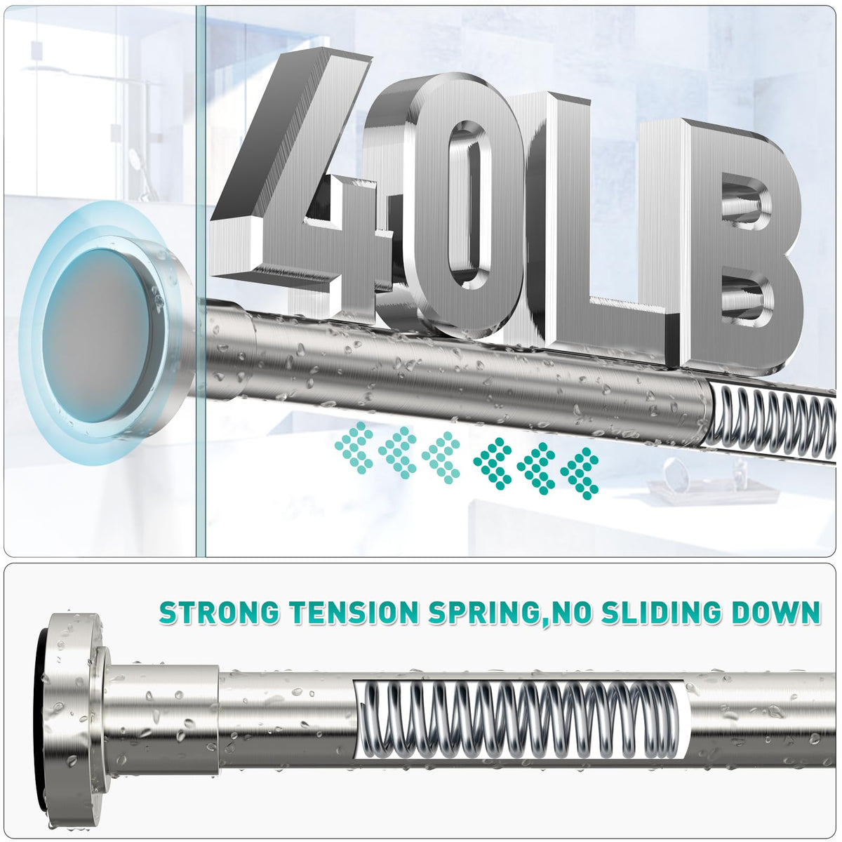 ? Improved Structure Design: The Shower Curtain Rod Cut to Length Design will Distribute the Weight More Evenly on Each Section Ingeniously, So that Makes It Both Portable and More Load-bearing, Max Load 40 Lbs.
