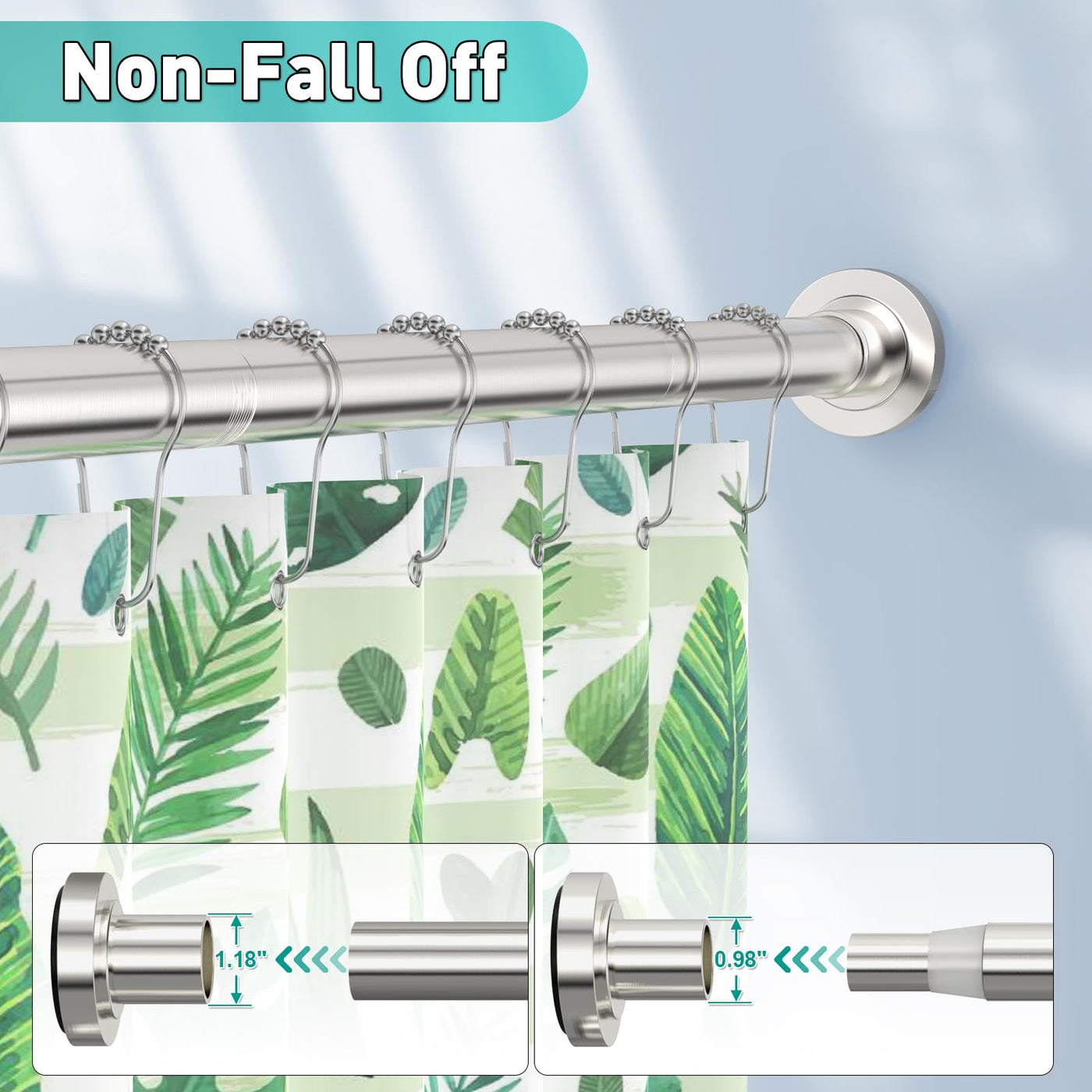 Shower Curtain Rod Adjustable 29-74 Inches, Spring Tension Shower Rod Stainless Steel 1 Inch Diameter Telescoping Curtain Rod For Bathroom, Windows Wardrobe, Non Slip, No Drilling, No Rust, Nickle