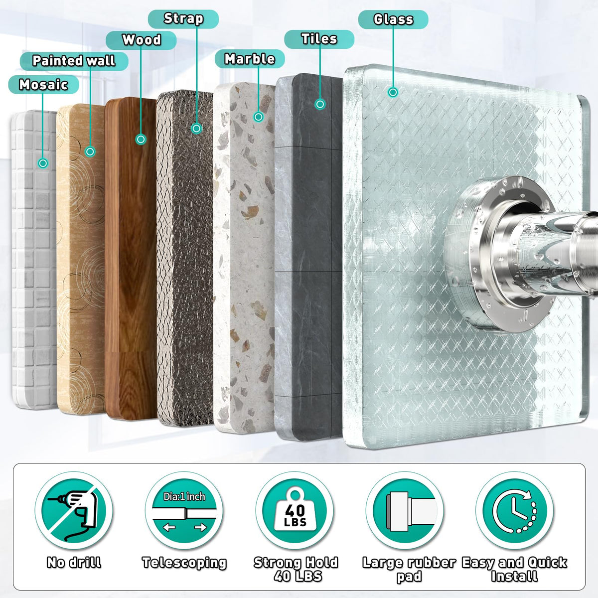 ? Easy Installation: No Drilling, No Tools. Features a Strong Spring Tension Mechanism, No Worries about Falling!