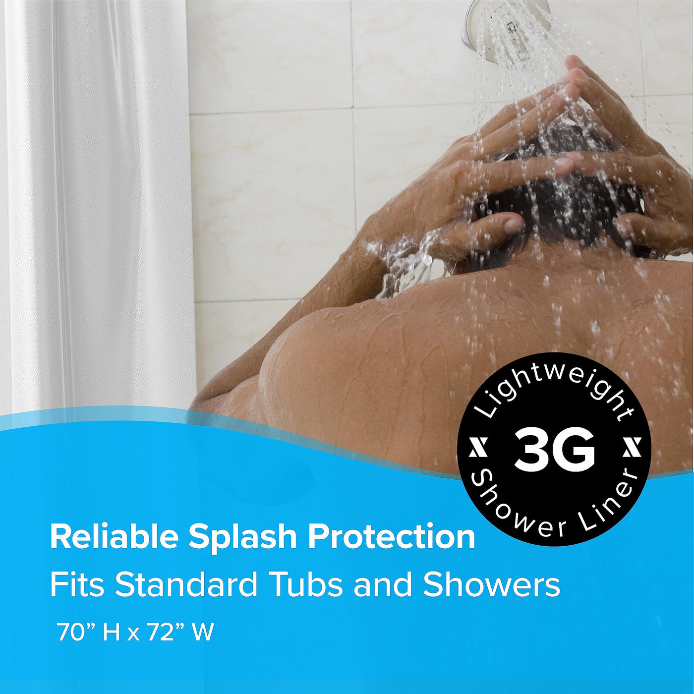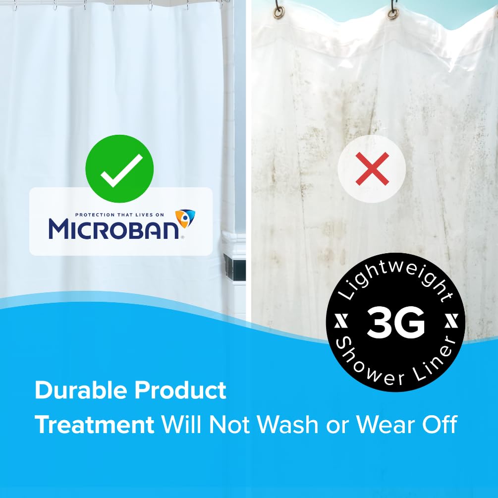 Slipx Solutions Microban-Infused Shower Curtain Liner, 3G Lightweight, 70'X72', White