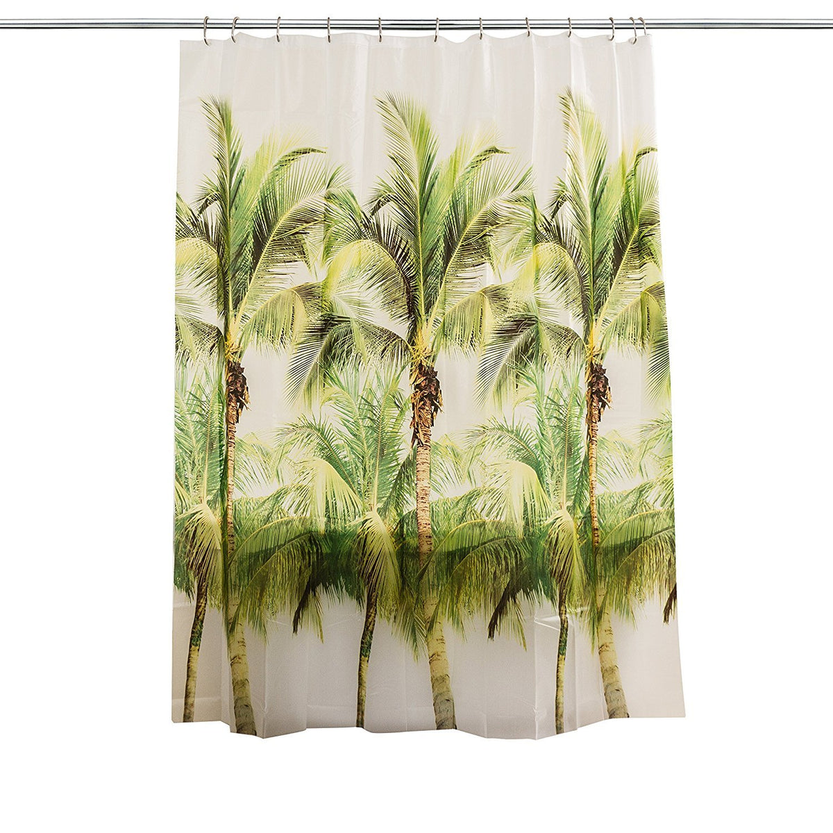 Splash Home Tree Palm Peva 5Gauge Shower Liner, For Bathroom And Bathtub, No Chemical Smell, Waterproof Curtains With 12 Rustproof Metal Grommet Holes 70W X 72H Inch, Green