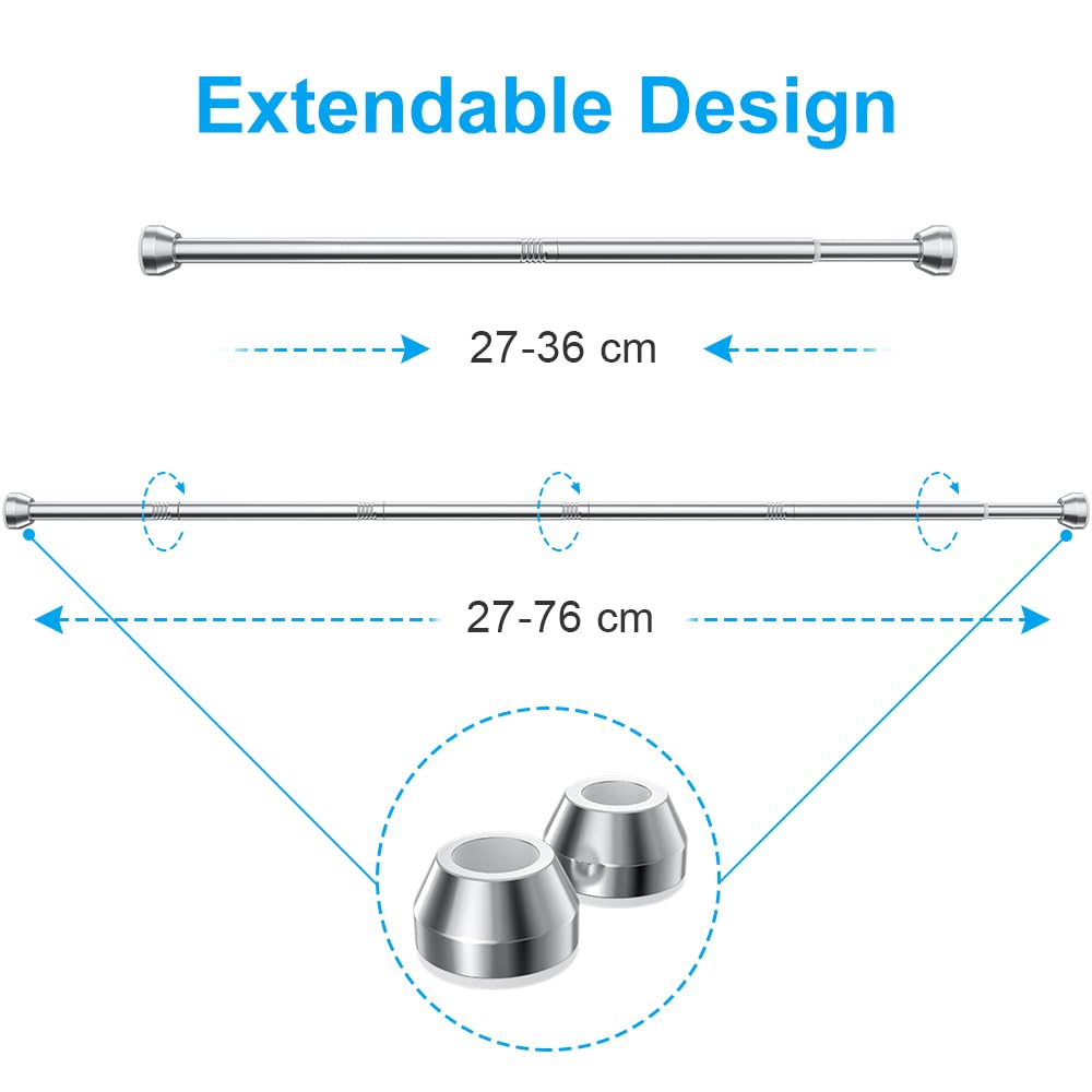 You can adjust it based on the shower area’s actual length, and its range is between 27 and 76 inches. There is no need to drill any holes, and you simply need to twist it to stably install the rod with its curtain and lining firmly against the wall. It can withstand up to a maximum of 30 lbs of gravity.