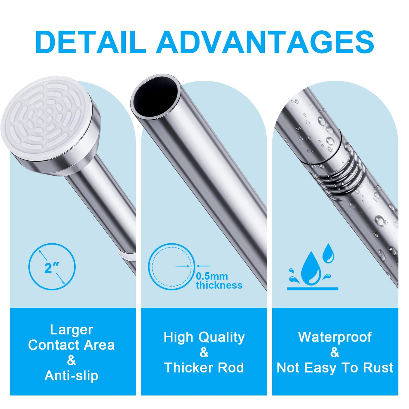 Teeck Shower Curtain Rod, 27-76 Inch Adjustable Tension Spring, Shower Curtain Rod Tension, Premium Stainless Steel, Anti-Slip, No Drilling, No Rust, For Bathroom, Silver