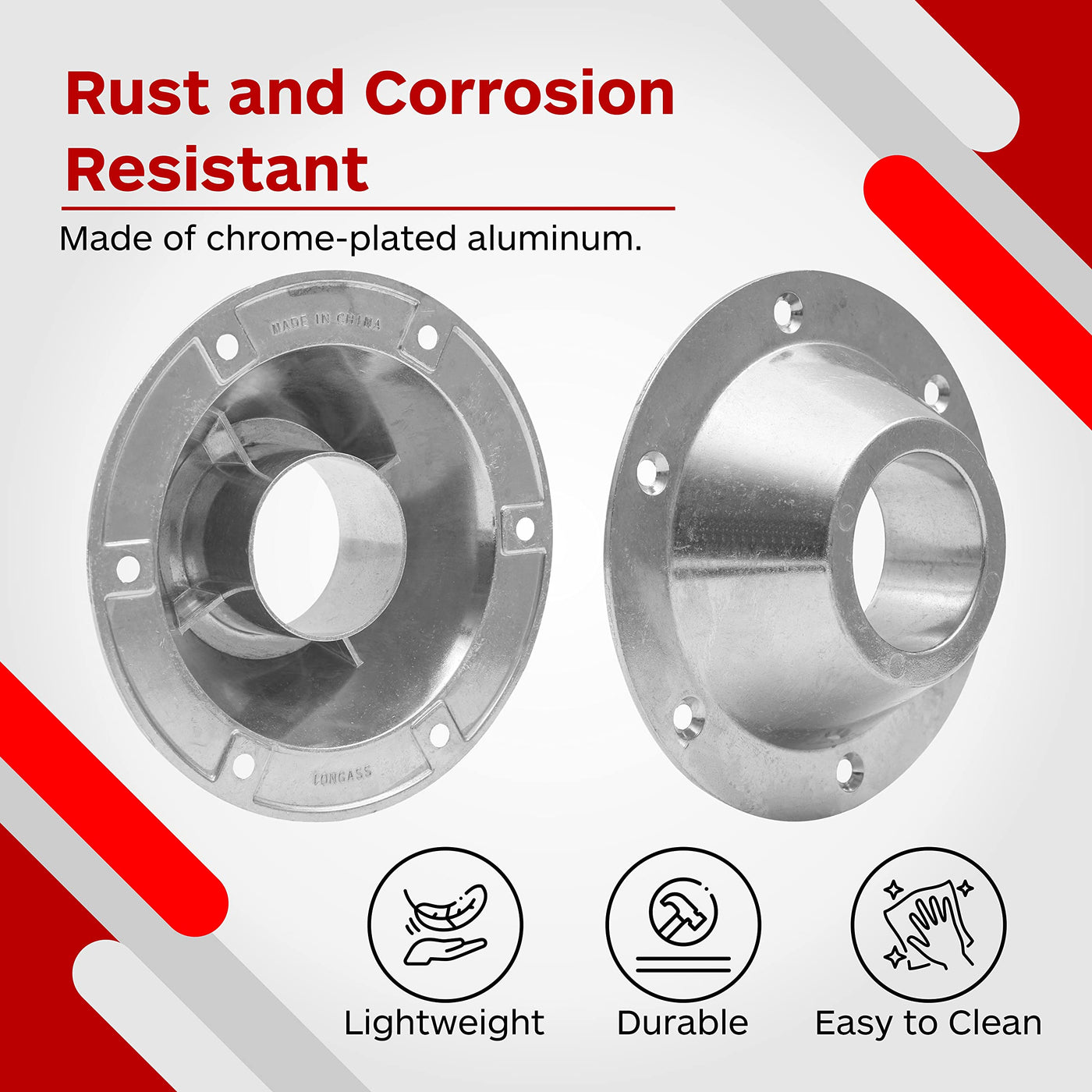 Q: What materials are the TonGass RV Table Bases made of?A: The TonGass RV Table Bases are made from chrome-plated aluminum, which provides durability and resistance to rust and corrosion, ensuring longevity even in varied environmental conditions.