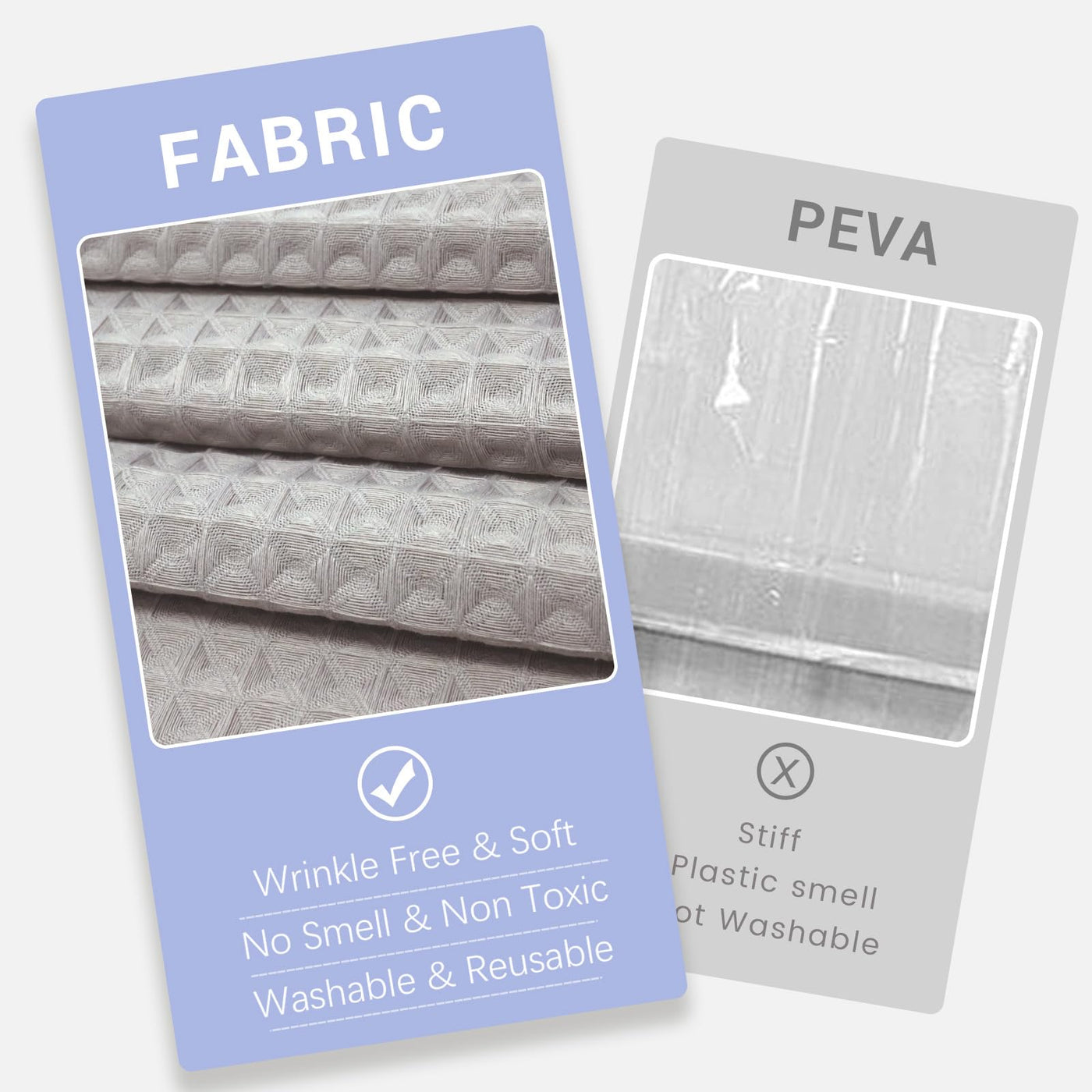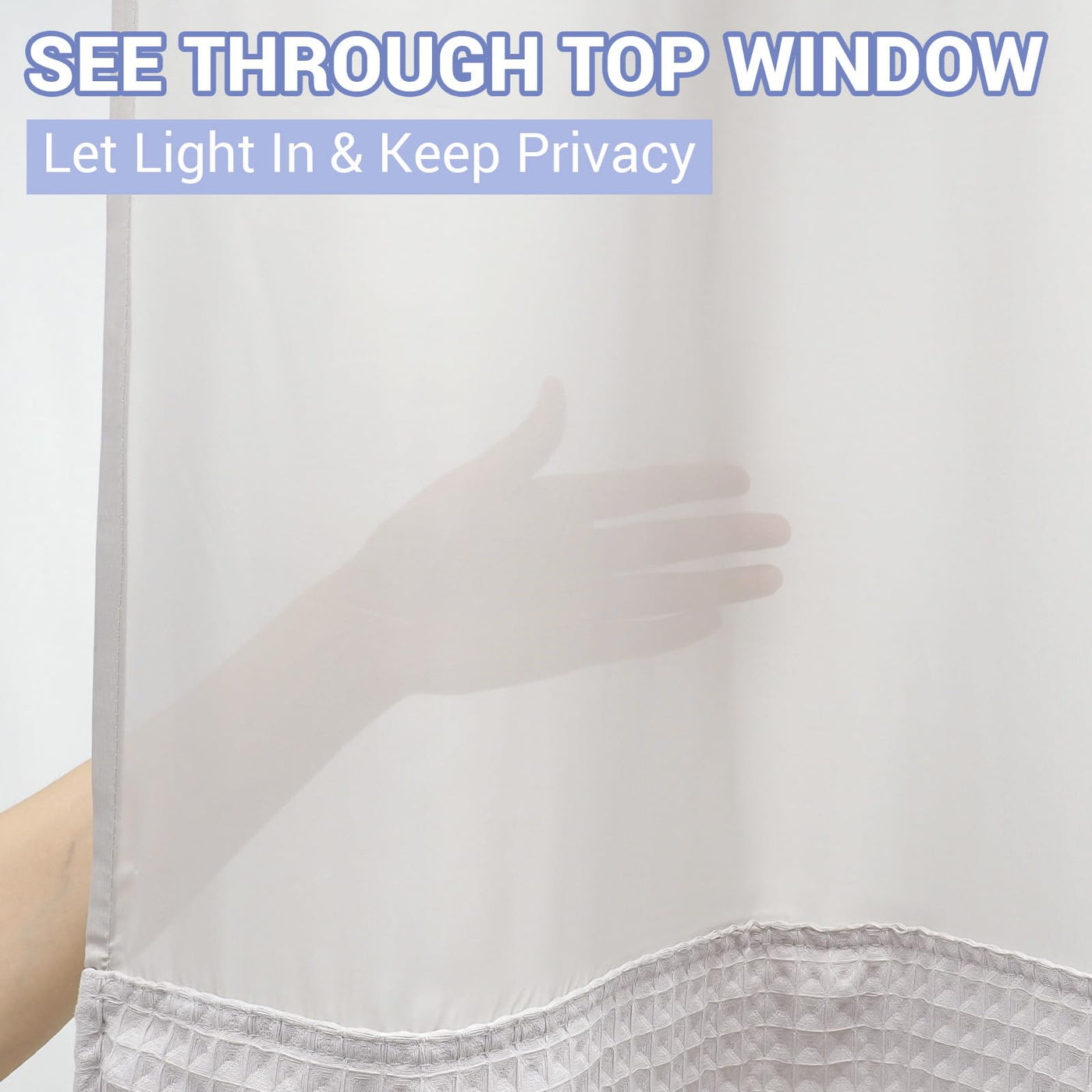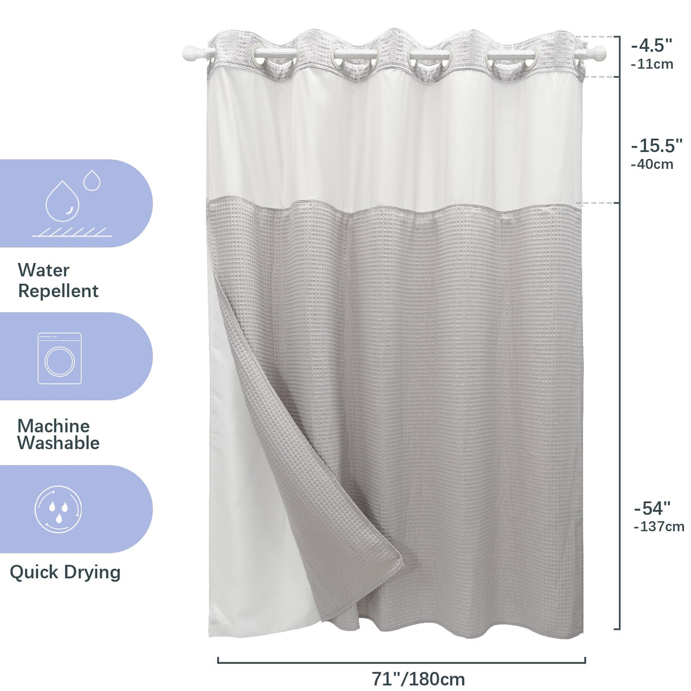 Viuoon No Hook Shower Curtain Set With Snap In Fabric Liner, 250Gsm Waffle Weave Light Gray Hotel Grade Bath Shower Curtain - See Through Top Window, Waterproof & Washable, 71W X 74H