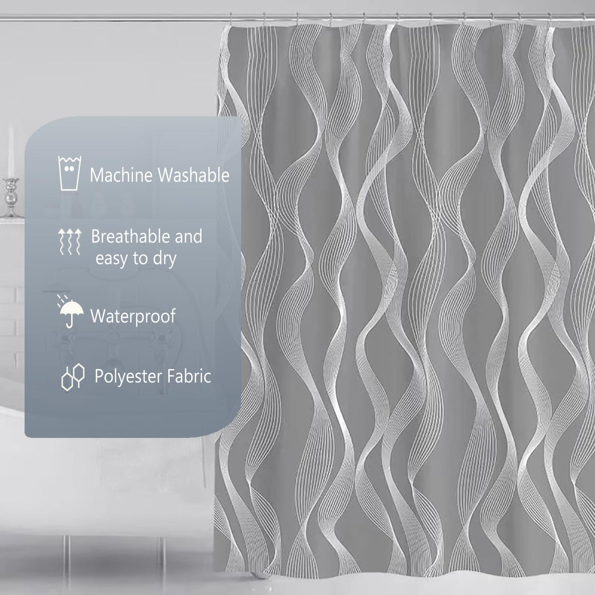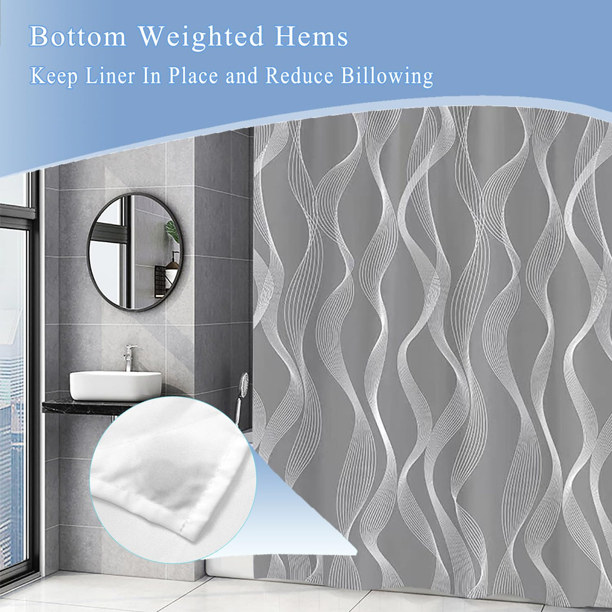Xxmotp Grey Wave Fabric Shower Curtain Liner, Hotel Quality Waterproof Soft Cloth Shower Liner With 12 Rust Resistant Grommets And Magnets, Shower Curtains For Bathroom 72' X 72'