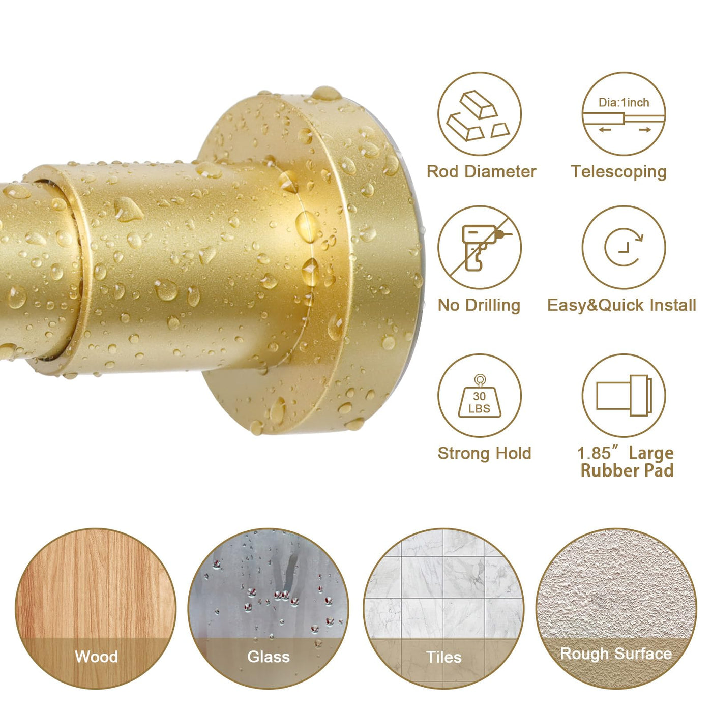 Ynl Gold Shower Curtain Rod 32-80 Inch(2.7-6.6Ft), Non Slip, Never Rust, No Drill Stainless Steel Spring Tension Shower Rod, Telescoping Curtain Rod For Bathroom Window Living Room