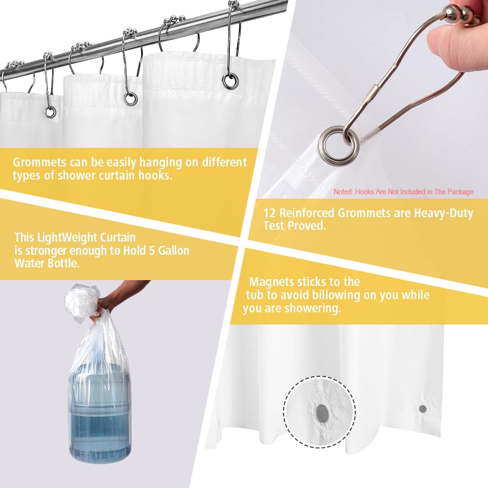 Zemahome Frosted Plastic Shower Curtain Liner, 72X72 Inch Thin Lightweight Plastic Semi-Transparent Bathroom Shower Showroom Inner Curtain With Rustproof Metal Grommet Holes And Weighted Magnets